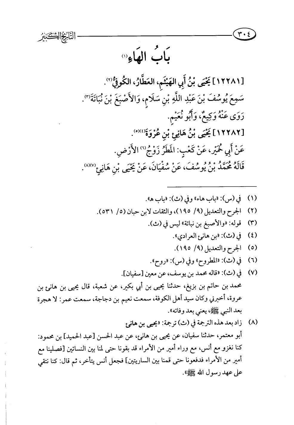 قَالَهُ مُحَمَّدُ بْنُ يُوسُفَ، عَنْ سُفْيَانَ، عَنْ يَحْيَى بْنِ هَانِئٍ (¬٧) (¬٨).