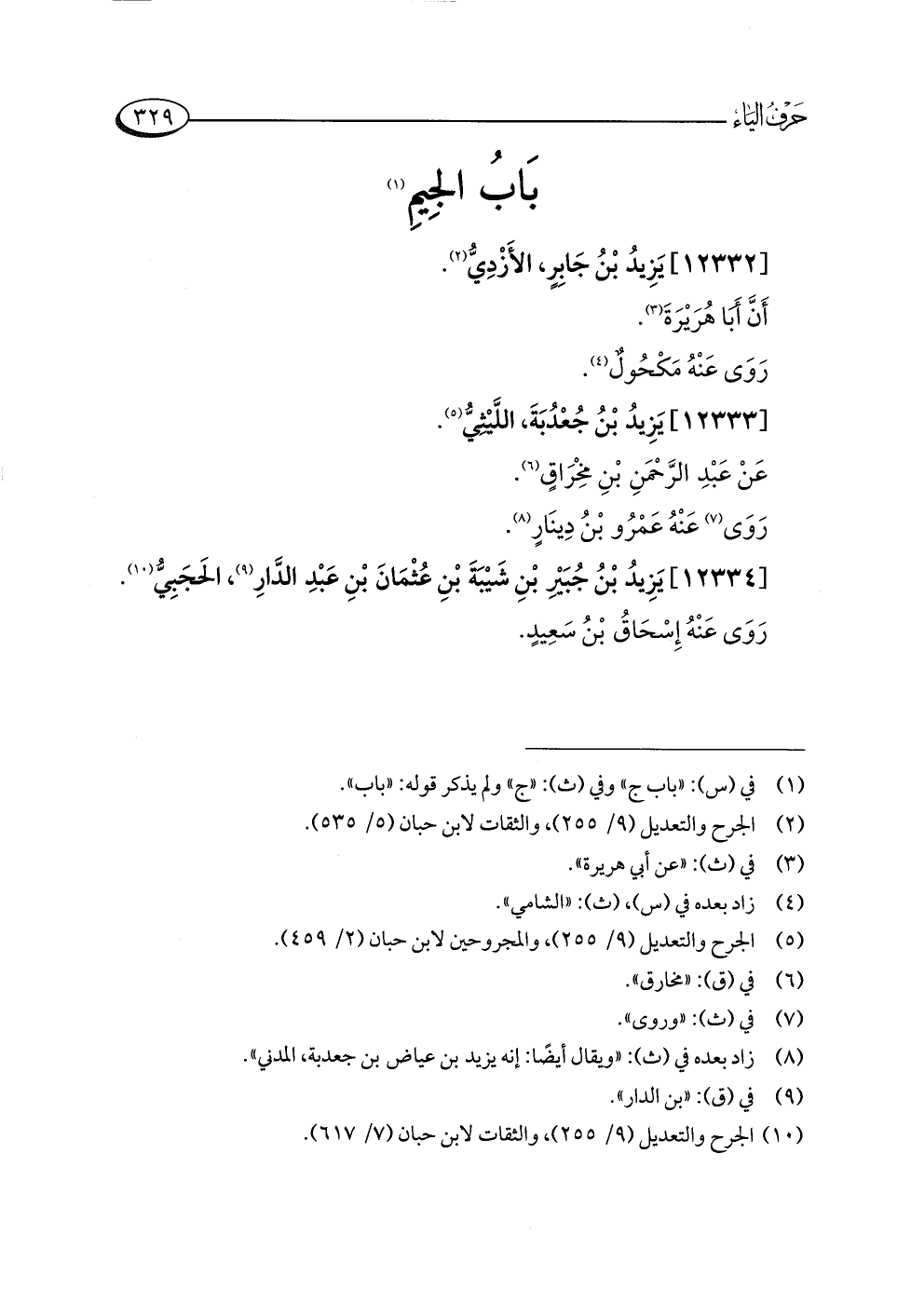 [١٢٣٣٤] يَزِيدُ بْنُ جُبَيْرِ بْنِ شَيْبَةَ بْنِ عُثْمَانَ بْنِ عَبْدِ الدَّارِ (¬٩)، الحَجَبِيُّ (¬١٠).