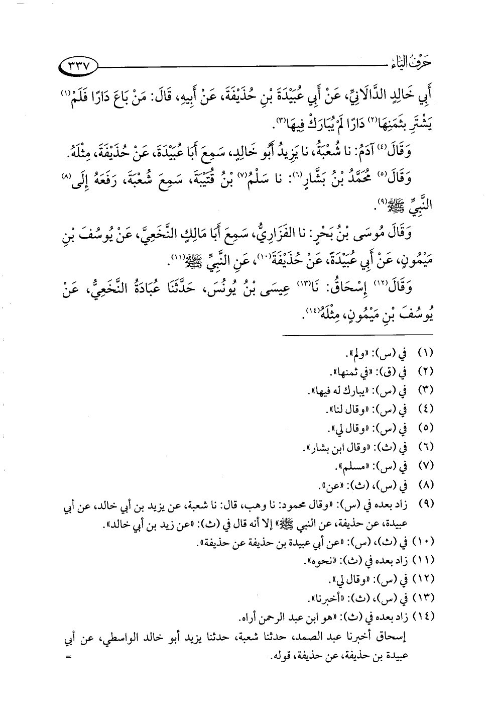 (¬٩) زاد بعده في (س): "وقال محمود: نا وهب، قال: نا شعبة، عن يزيد بن أبي خالد، عن أبي عبيدة، عن حذيفة، عن النبي -صلى اللَّه عليه وسلم-" إلا أنه قال في (ث): "عن زيد بن أبي خالد".