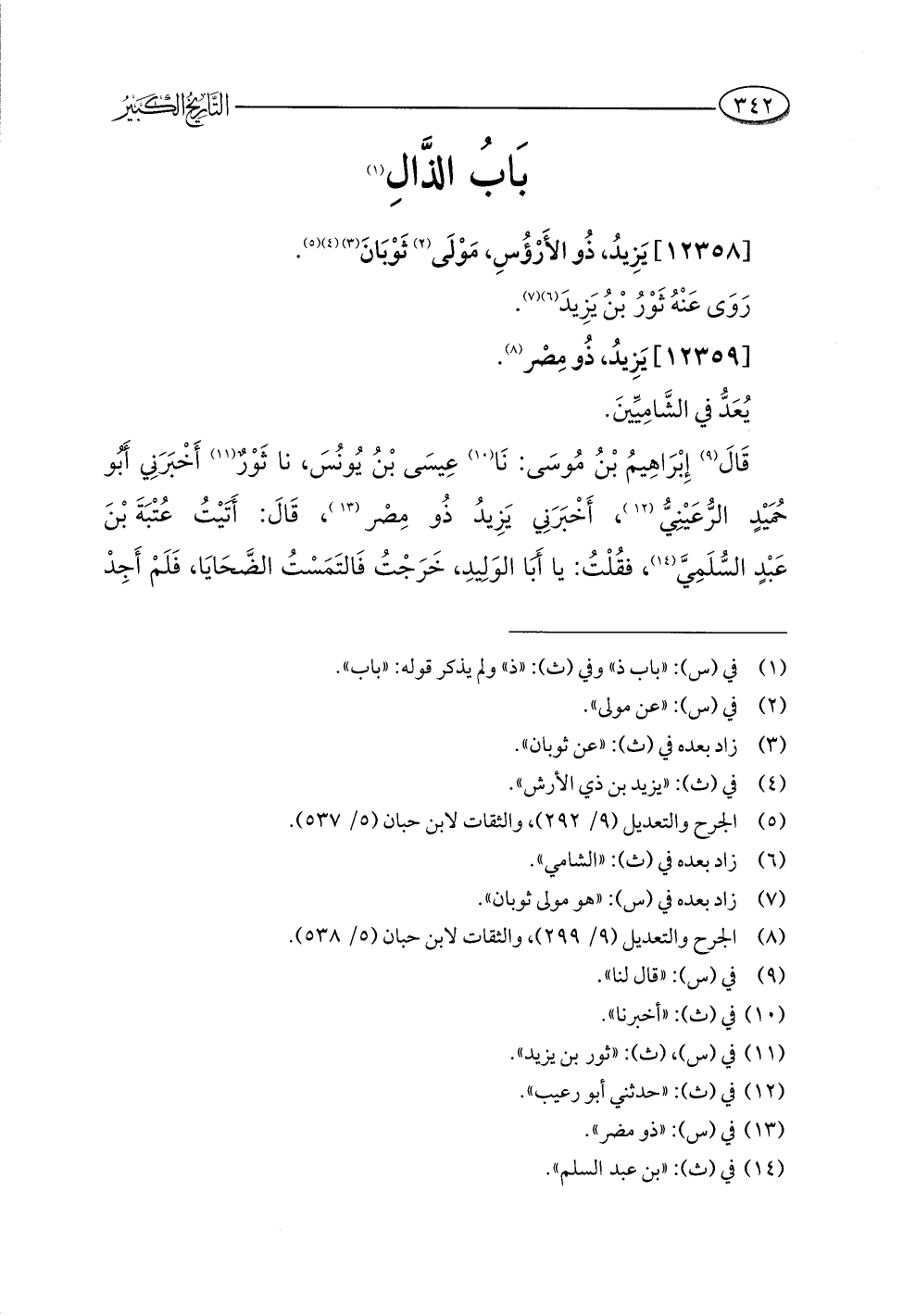 [١٢٣٥٨] يَزِيدُ، ذُو الأَرْؤُسِ، مَوْلَى (¬٢) ثَوْبَانَ (¬٣) (¬٤) (¬٥).