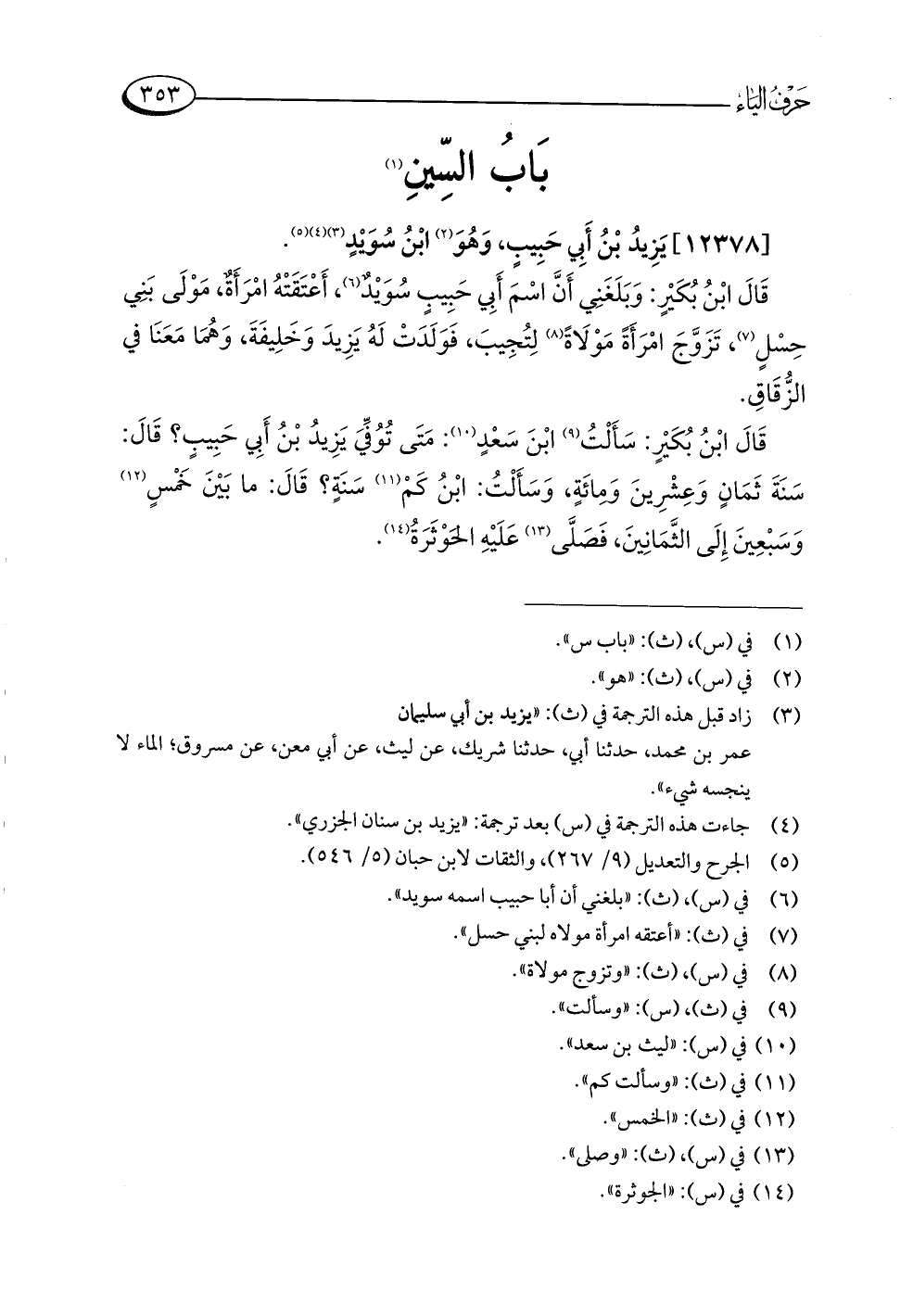 (¬٦) في (س)، (ث): "بلغني أن أبا حبيب اسمه سويد".