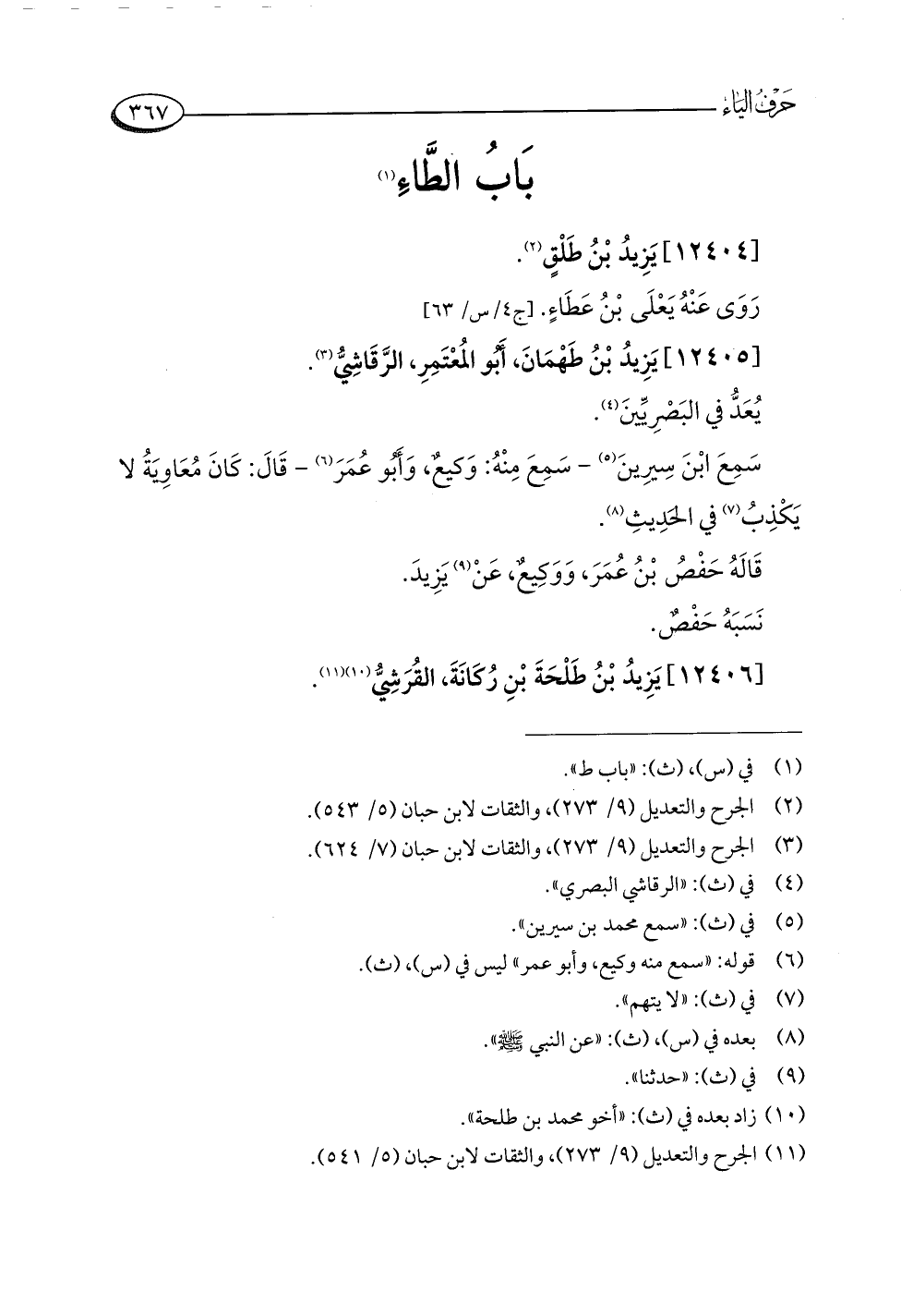 (¬١١) الجرح والتعديل (٩/ ٢٧٣)، والثقات لابن حبان (٥/ ٥٤١).