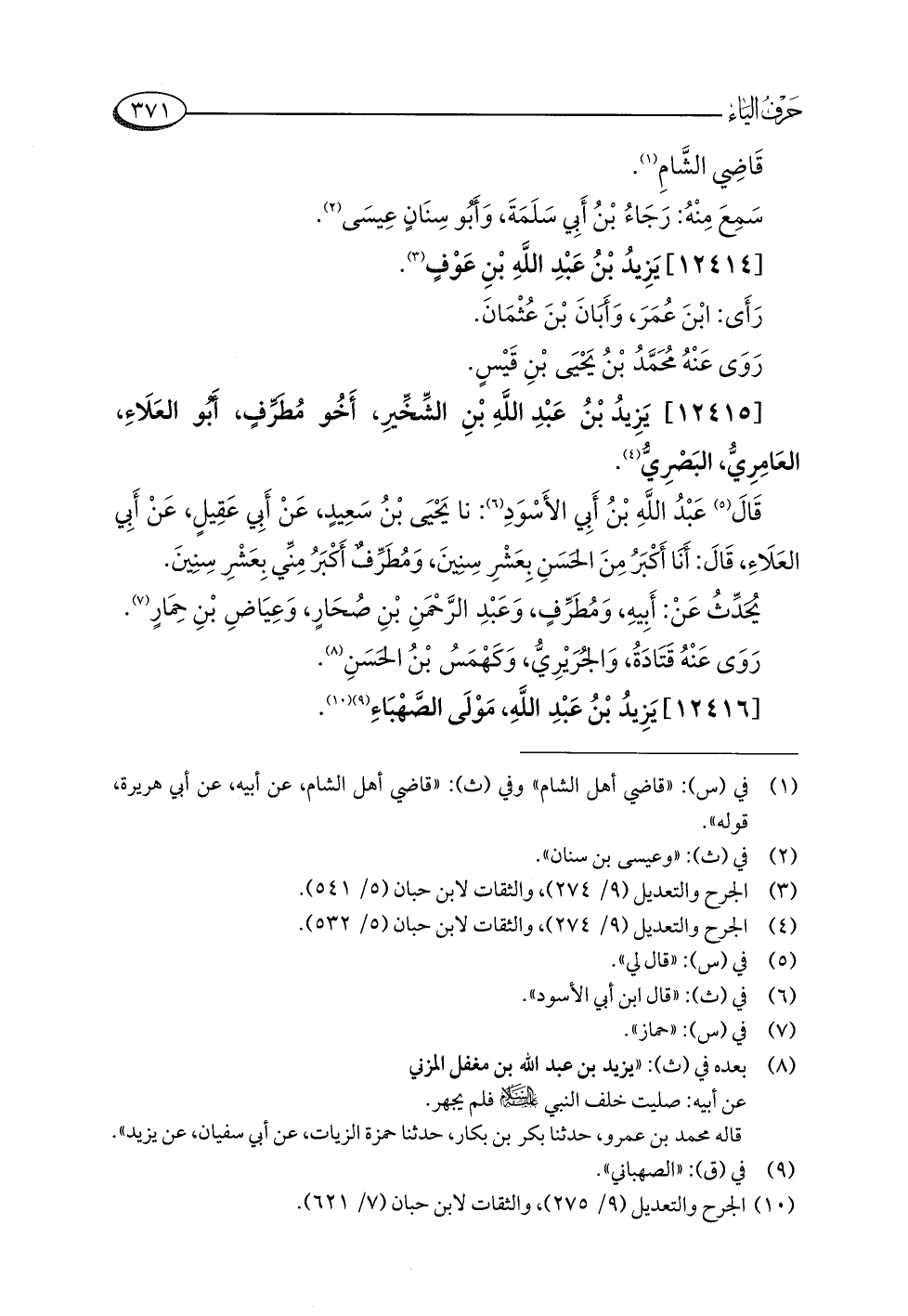 (¬٣) الجرح والتعديل (٩/ ٢٧٤)، والثقات لابن حبان (٥/ ٥٤١).