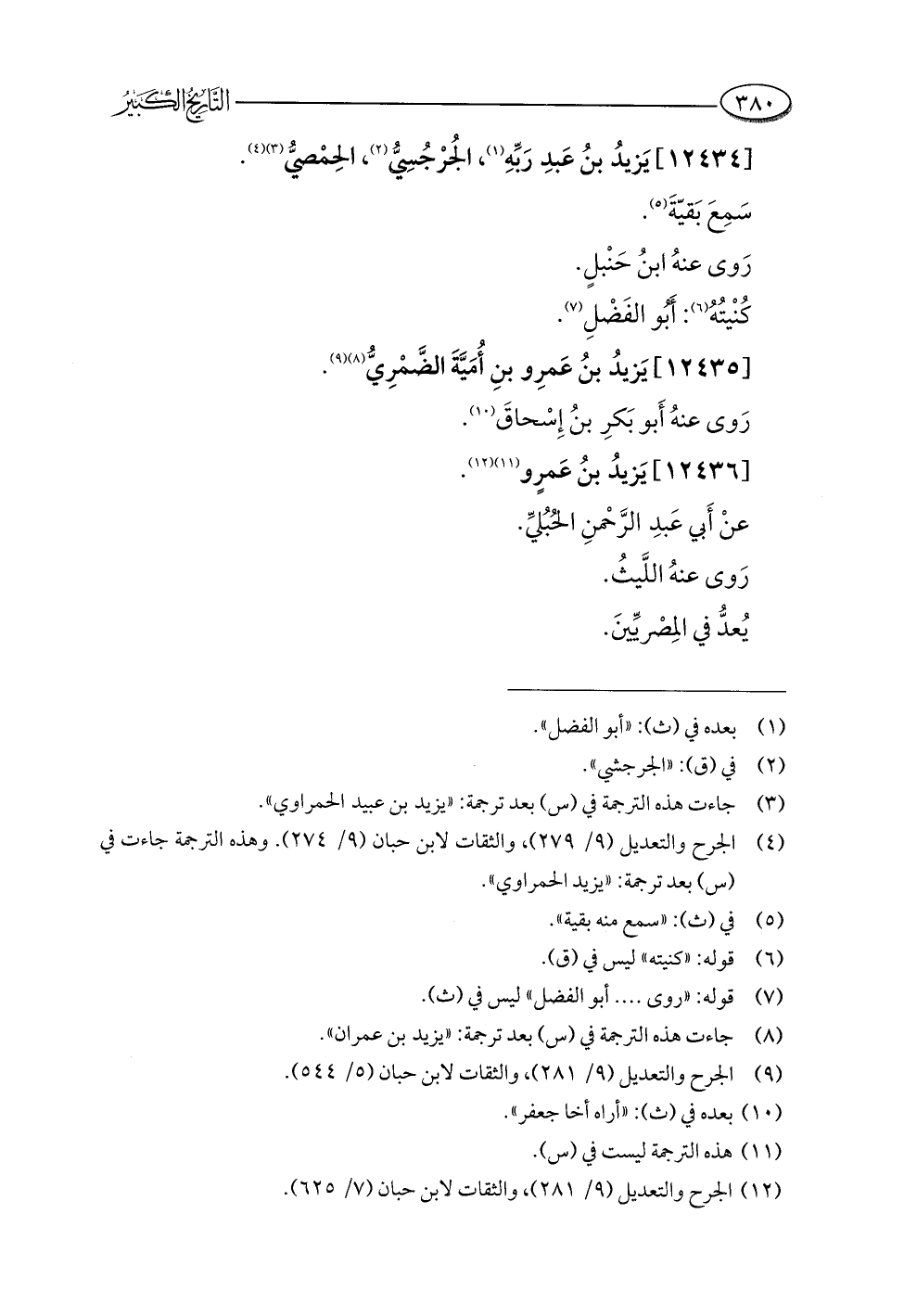 (¬١٢) الجرح والتعديل (٩/ ٢٨١)، والثقات لابن حبان (٧/ ٦٢٥).