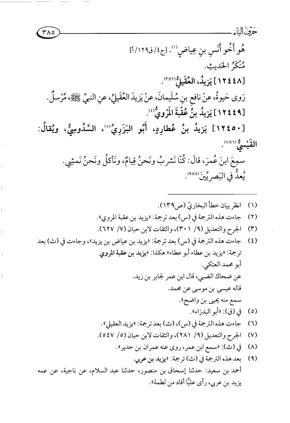 (¬٦) جاءت هذه الترجمة في (س)، (ث) بعد ترجمة: "يزيد العقيلي".