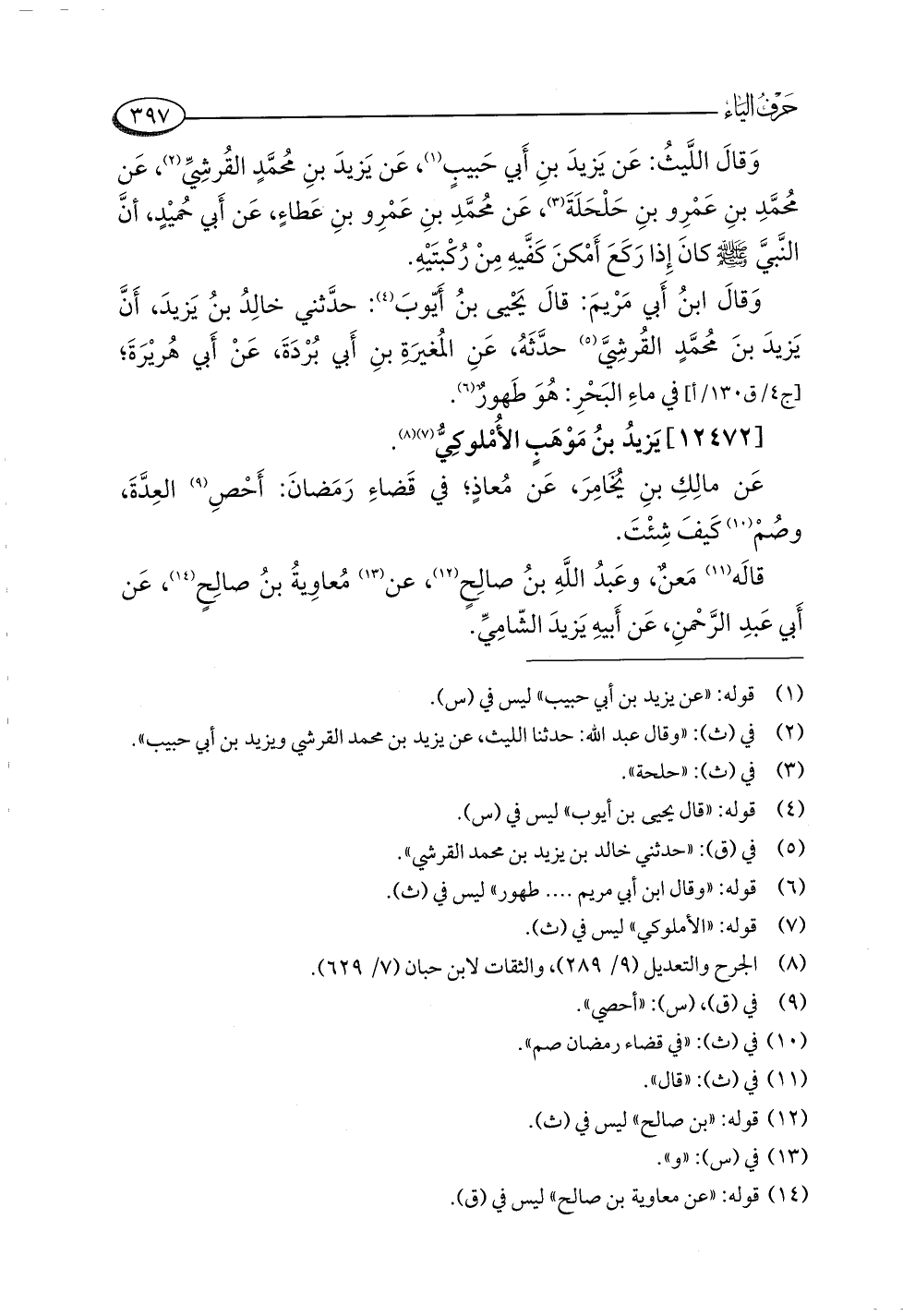 قالَه (¬١١) مَعنٌ، وعَبدُ اللَّهِ بنُ صالِحٍ (¬١٢)، عن (¬١٣) مُعاوِيةُ بنُ صالِحٍ (¬١٤)، عَن أَبي عَبدِ الرَّحْمنِ، عَن أَبيهِ يَزيدَ الشّامِيِّ.