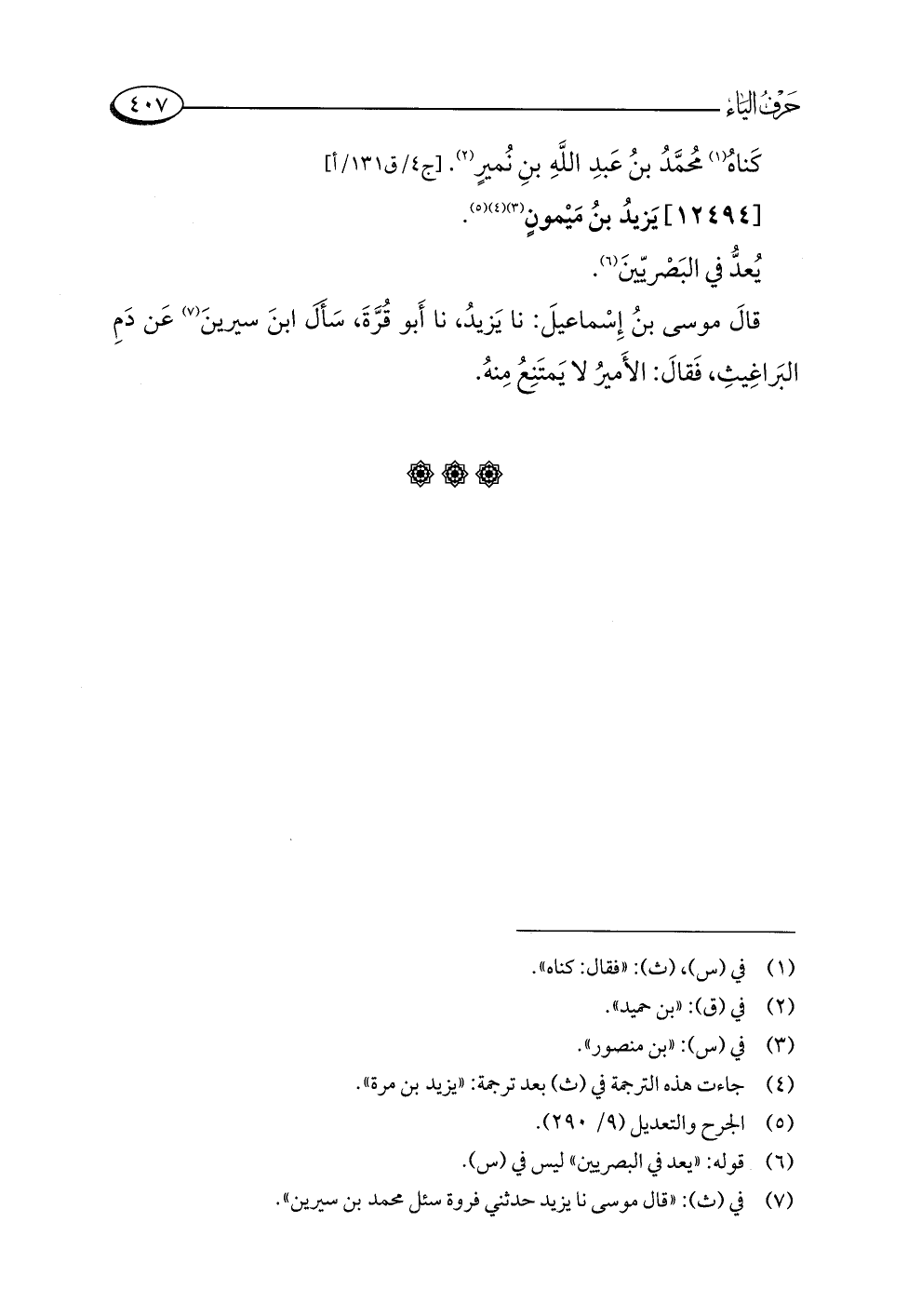 (¬٤) جاءت هذه الترجمة في (ث) بعد ترجمة: "يزيد بن مرة".