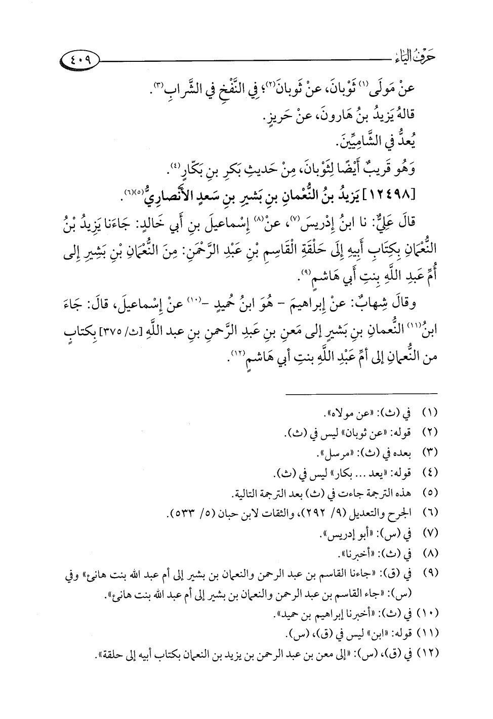 وقالَ شِهابٌ: عنْ إِبراهيمَ -هُوَ ابنُ حُميدٍ- (¬١٠) عنْ إِسْماعيلَ، قالَ: جَاءَ ابنُ (¬١١) النُّعمانِ بنِ بَشيرٍ إلى مَعنِ بنِ عَبدِ الرَّحمنِ بنِ عبد اللَّهِ بِكتابٍ من النُّعمانِ إلى أمِّ عَبْدِ اللَّهِ بنتِ أَبِي هَاشمٍ (¬١٢).