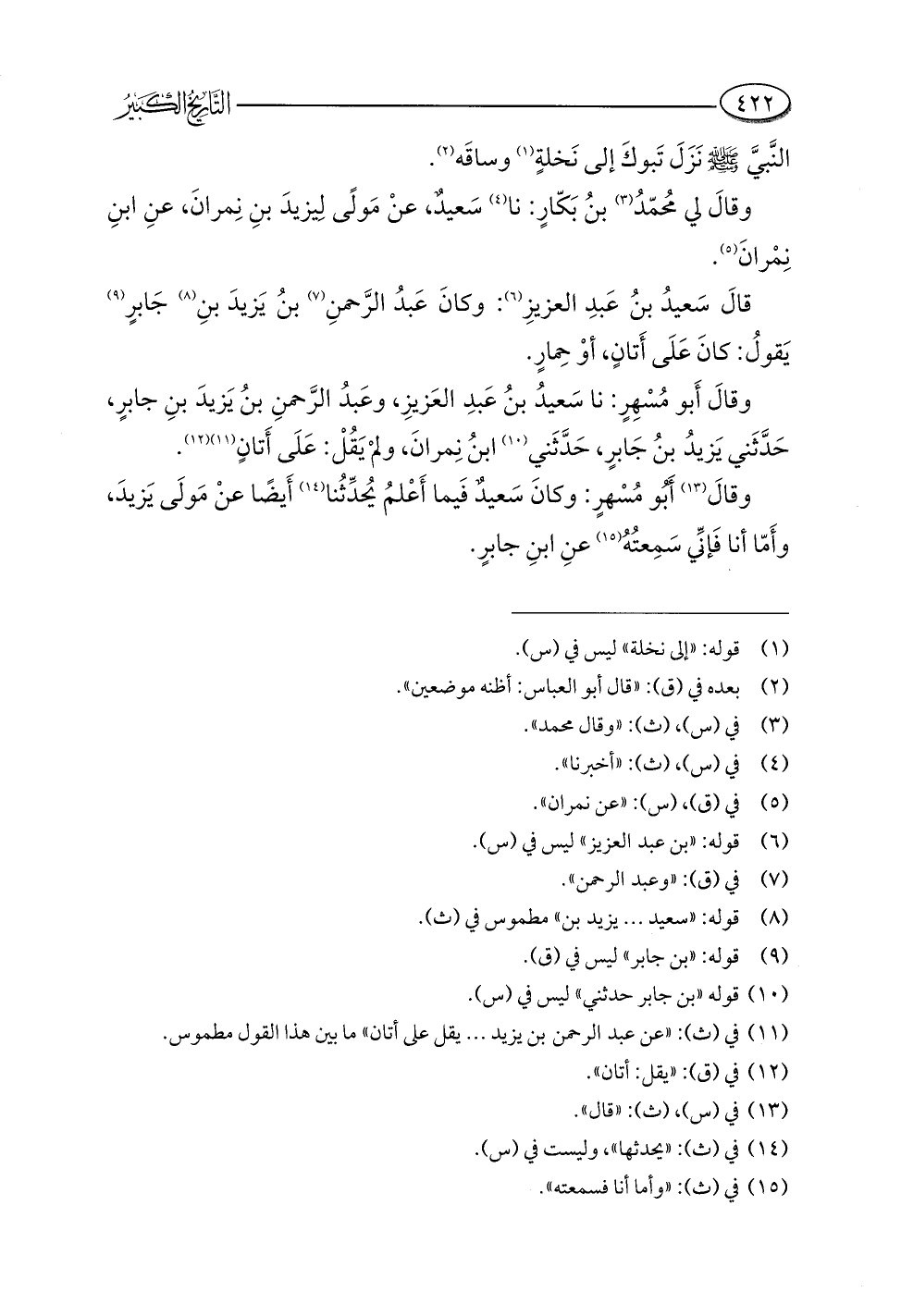 النَّبيَّ -صلى اللَّه عليه وسلم- نزَلَ تَبوكَ إلى نَخلةٍ (¬١) وساقَه (¬٢).