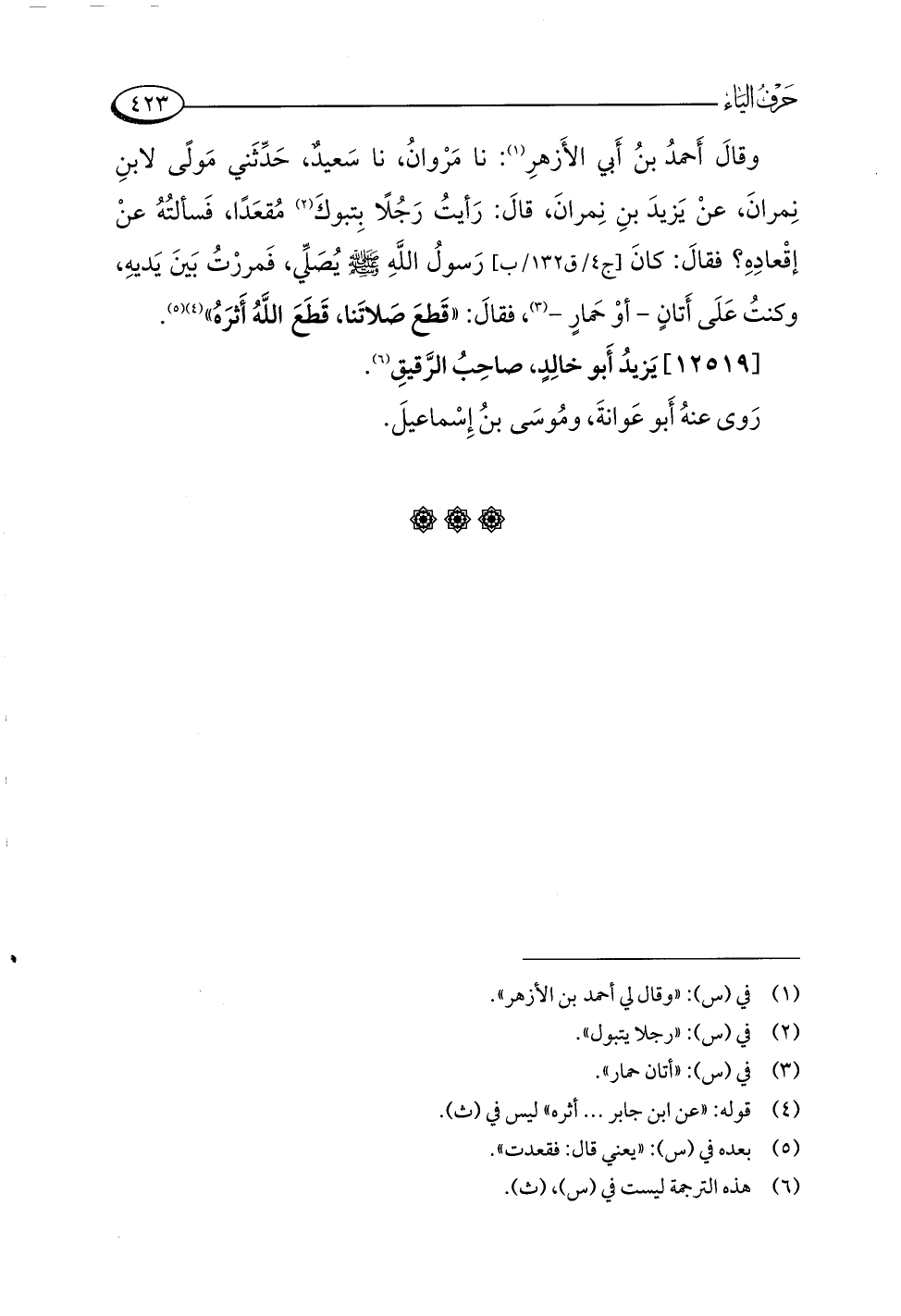 (¬٤) قوله: "عن ابن جابر. . . أثره" ليس في (ث).
