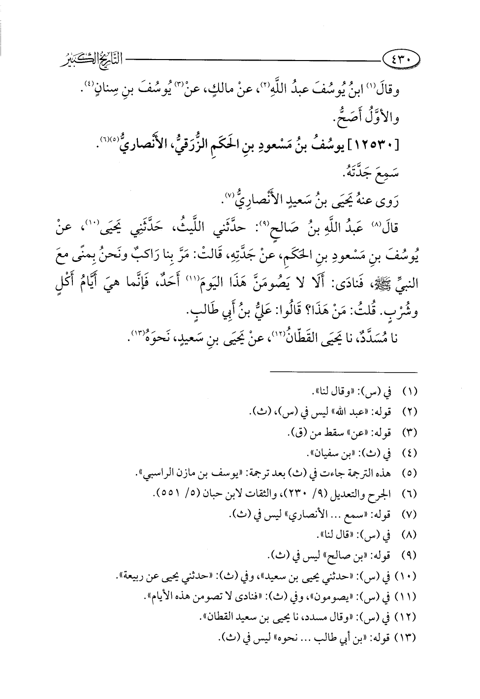 (¬١٠) في (س): "حدثني يحيى بن سعيد"، وفي (ث): "حدثني يحيى عن ربيعة".
