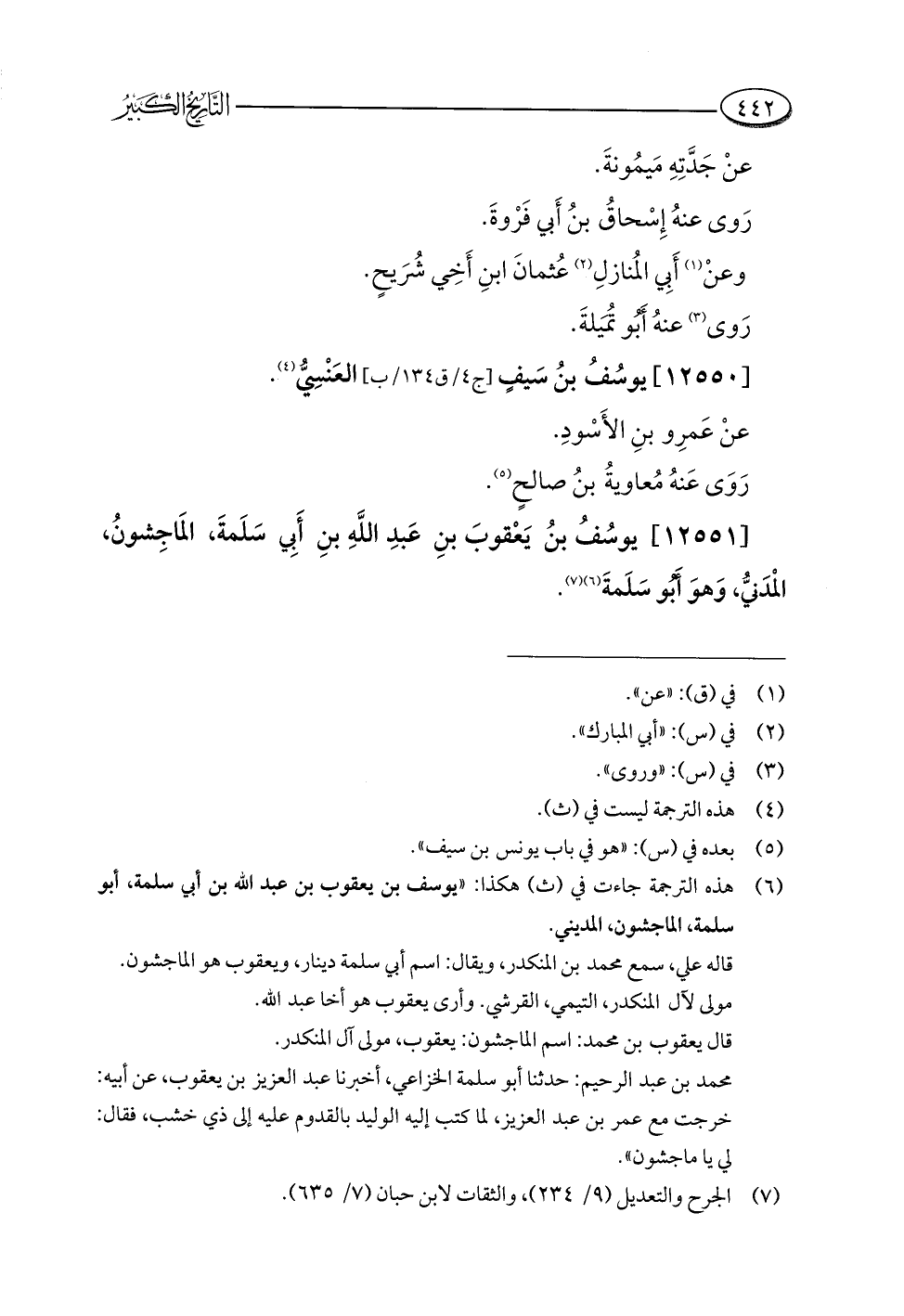 [١٢٥٥١] يوسُفُ بنُ يَعْقوبَ بنِ عَبدِ اللَّهِ بنِ أبِي سَلمة، المَاجِشونُ، المْدَنيُّ، وَهوَ أَبُو سَلَمةَ (¬٦) (¬٧).