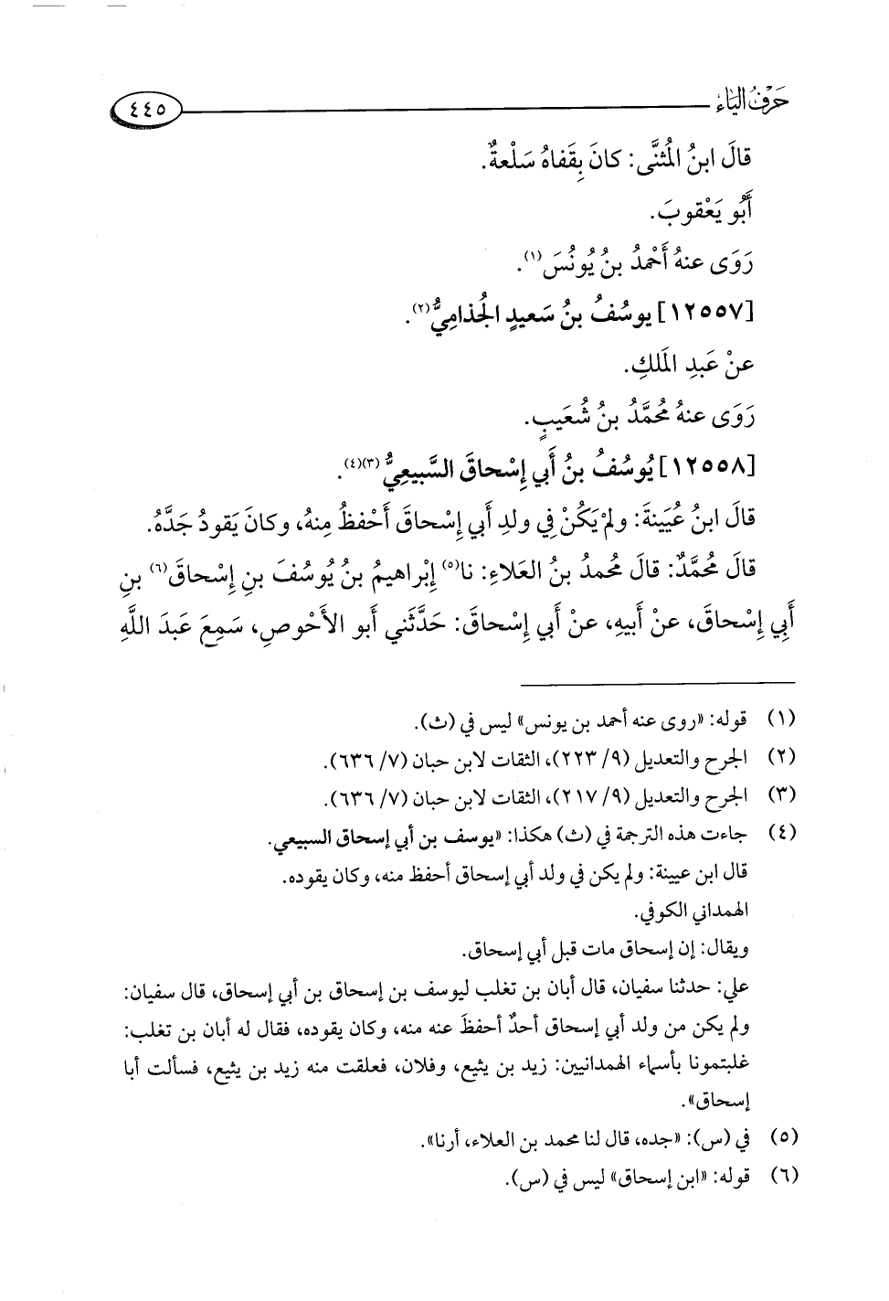 (¬٤) جاءت هذه الترجمة في (ث) هكذا: "يوسف بن أبي إسحاق السبيعي.