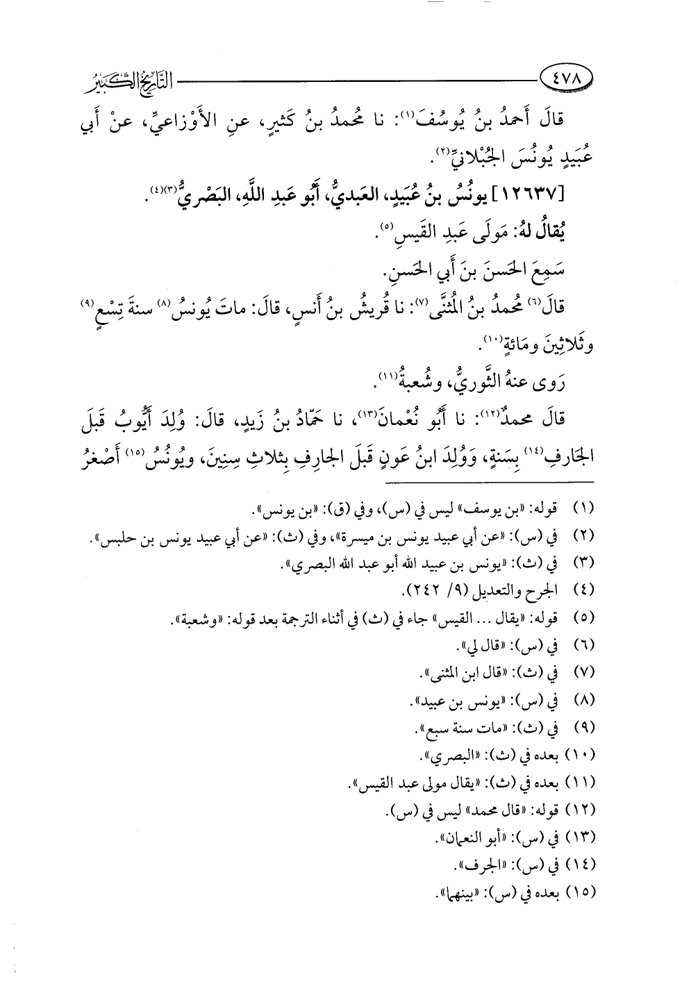 [١٢٦٣٧] يونُسُ بنُ عُبَيدٍ، العَبديُّ، أَبُو عَبدِ اللَّهِ، البَصْريُّ (¬٣) (¬٤).