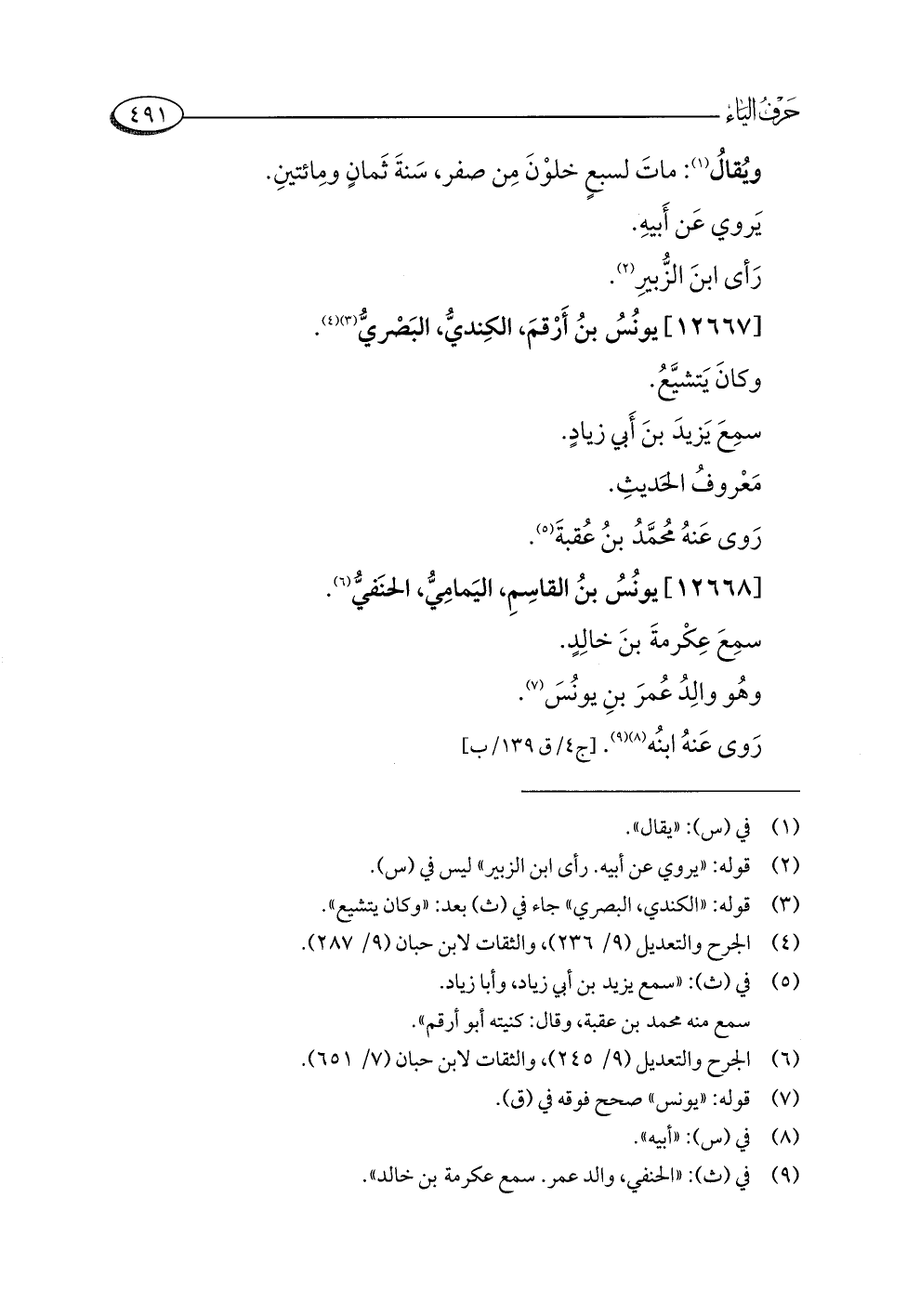 (¬٦) الجرح والتعديل (٩/ ٢٤٥)، والثقات لابن حبان (٧/ ٦٥١).