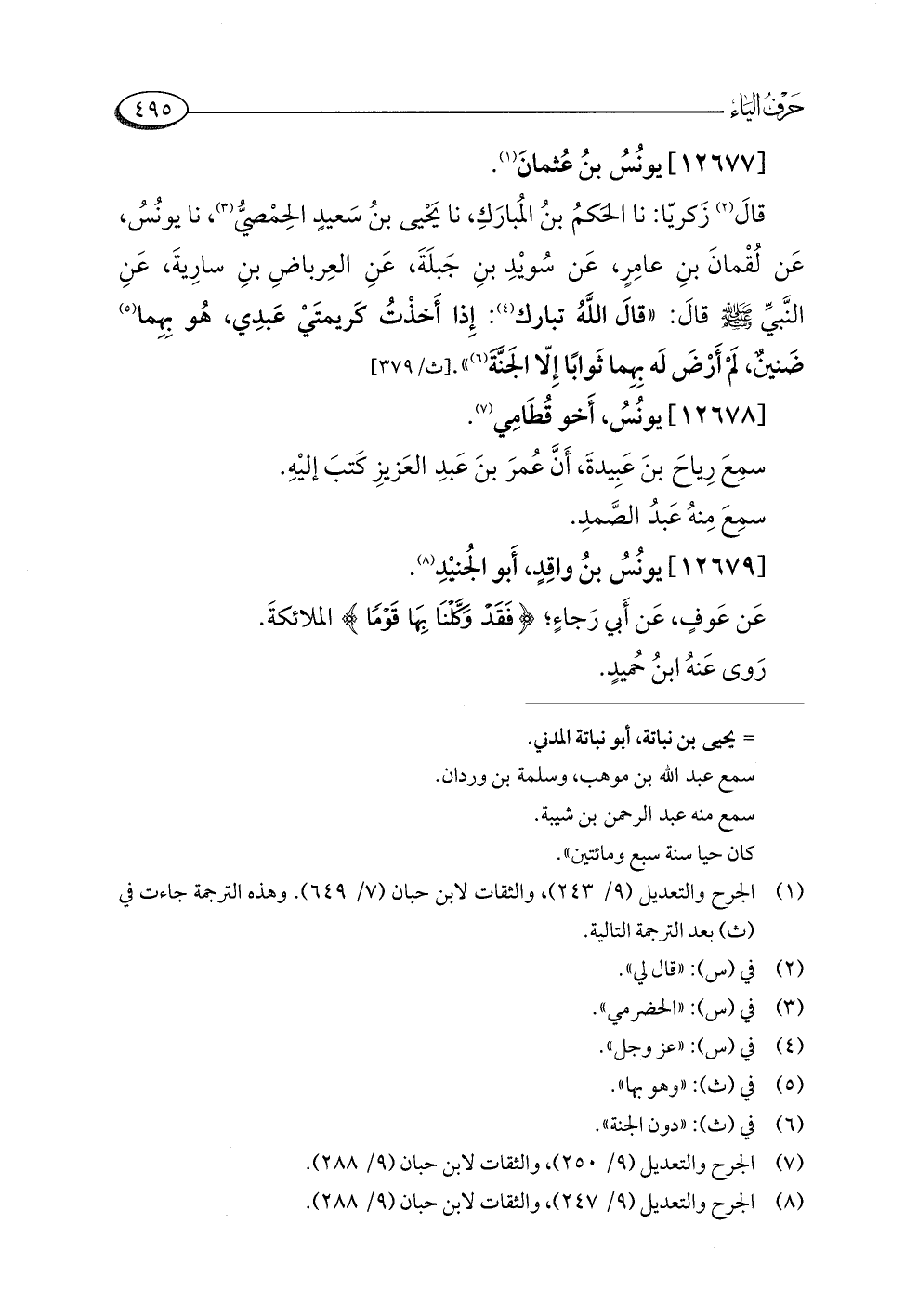 (¬٧) الجرح والتعديل (٩/ ٢٥٠)، والثقات لابن حبان (٩/ ٢٨٨).