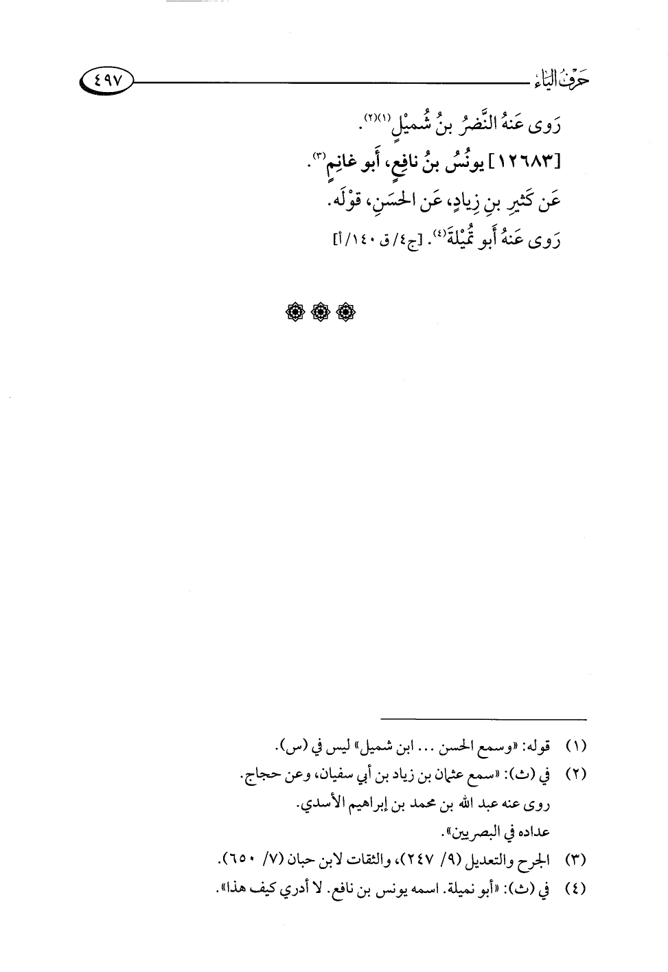 (¬٣) الجرح والتعديل (٩/ ٢٤٧)، والثقات لابن حبان (٧/ ٦٥٠).