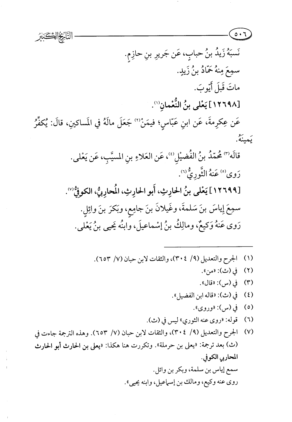 (¬٧) الجرح والتعديل (٩/ ٣٠٤)، والثقات لابن حبان (٧/ ٦٥٣). وهذه الترجمة جاءت في (ث) بعد ترجمة: "يعلى بن حرملة". وتكررت هنا هكذا: "يعلى بن الحارث أبو الحارث المحاربي الكوفي.