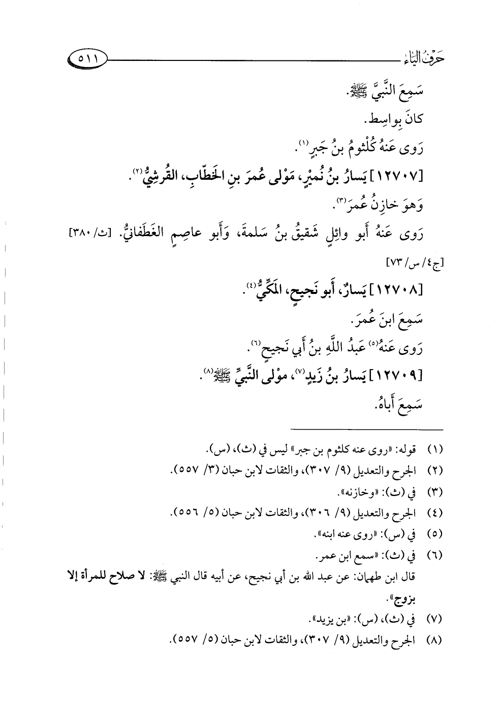 (¬٨) الجرح والتعديل (٩/ ٣٠٧)، والثقات لابن حبان (٥/ ٥٥٧).