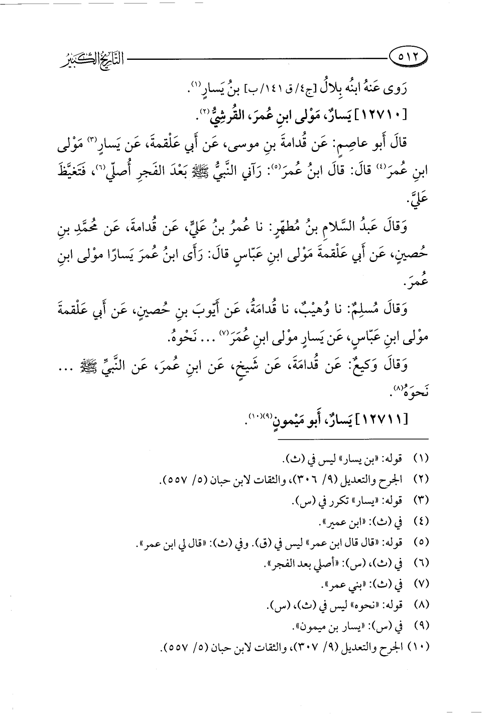 (¬١) قوله: "بن يسار" ليس في (ث).