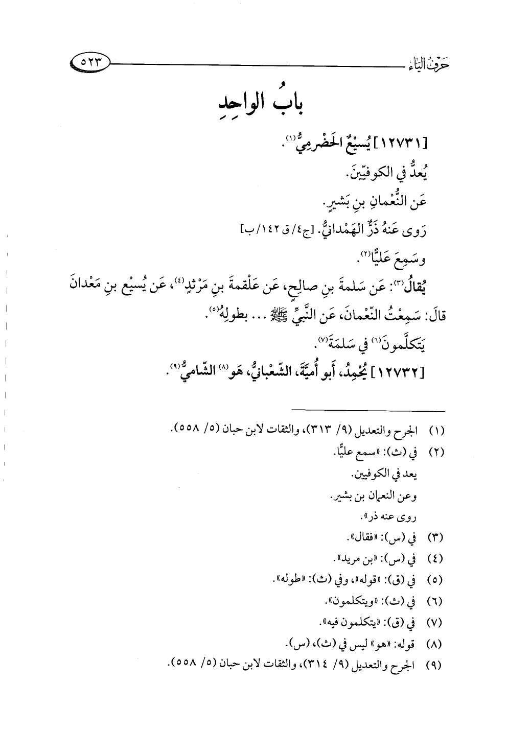 (¬٩) الجرح والتعديل (٩/ ٣١٤)، والثقات لابن حبان (٥/ ٥٥٨).