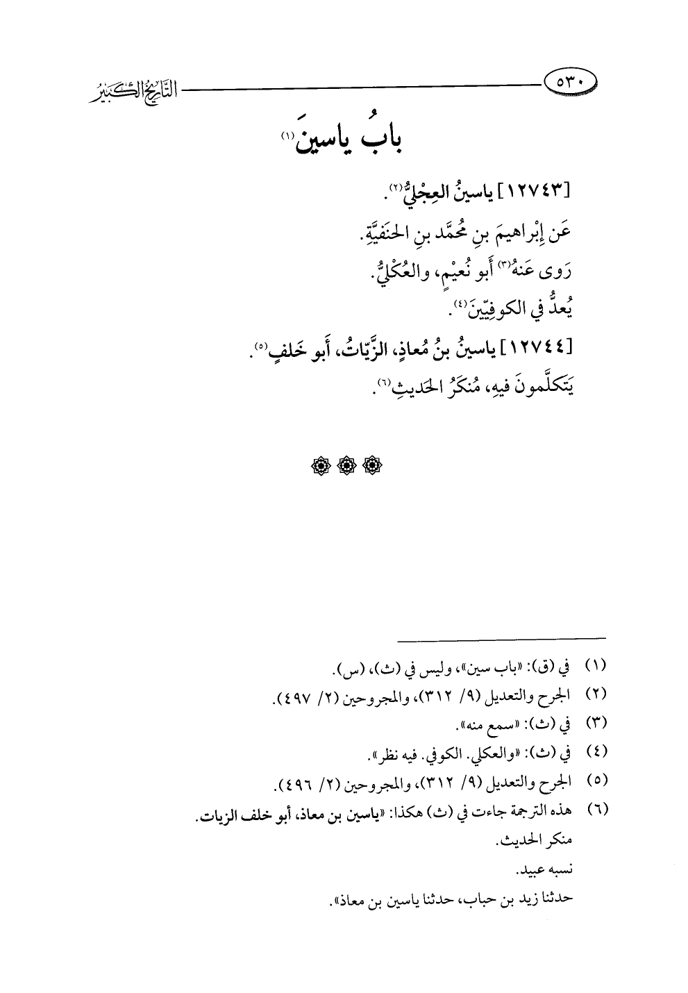 (¬٦) هذه الترجمة جاءت في (ث) هكذا: "ياسين بن معاذ، أبو خلف الزيات.
