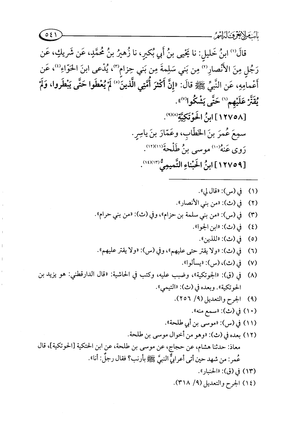 (¬١٤) الجرح والتعديل (٩/ ٣١٨).