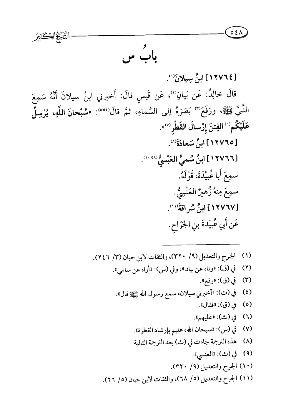 كتاب التاريخ الكبير للبخاري - ت الدباسي والنحال (اسم الجزء: 10)