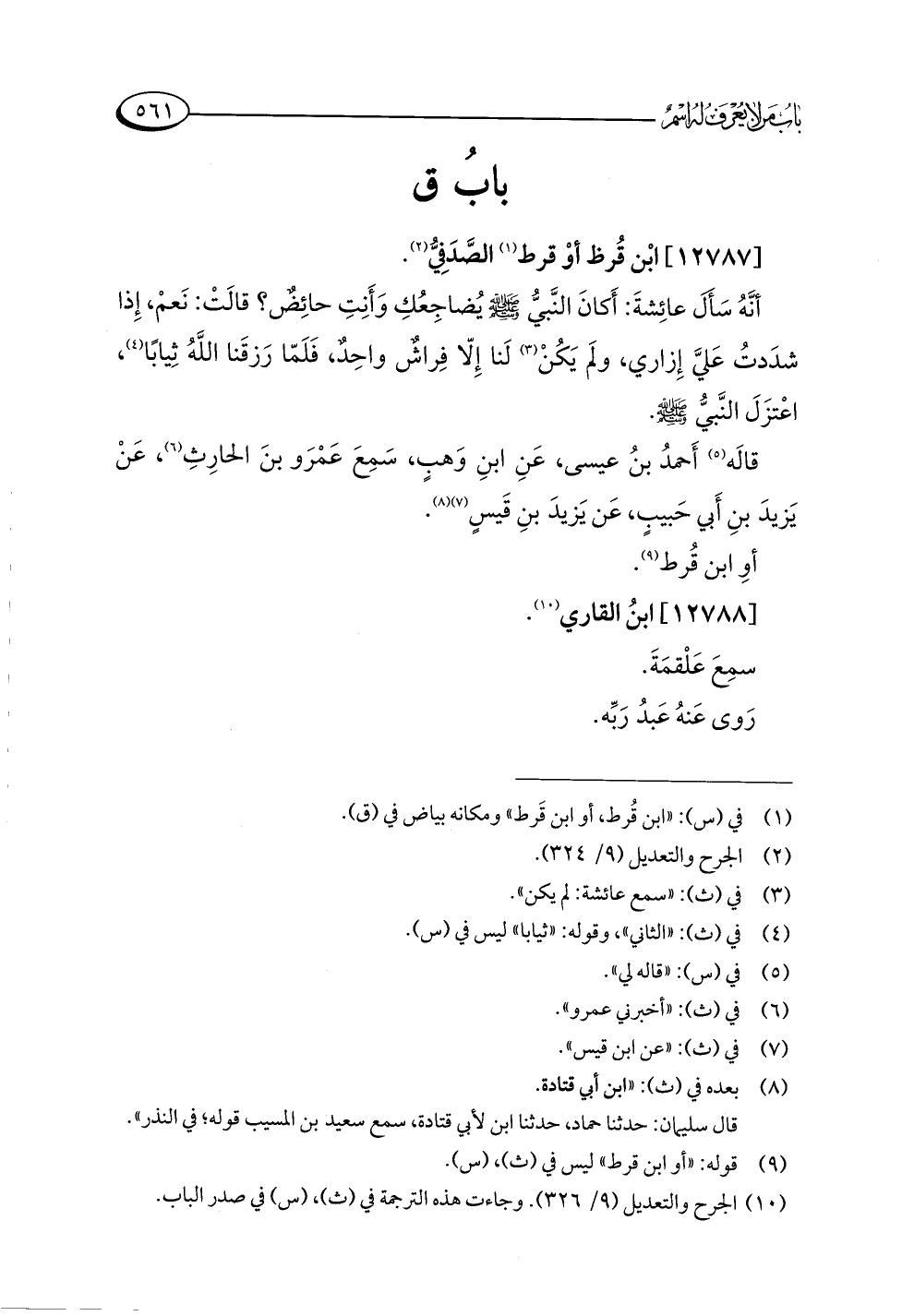 (¬١٠) الجرح والتعديل (٩/ ٣٢٦). وجاءت هذه الترجمة في (ث)، (س) في صدر الباب.