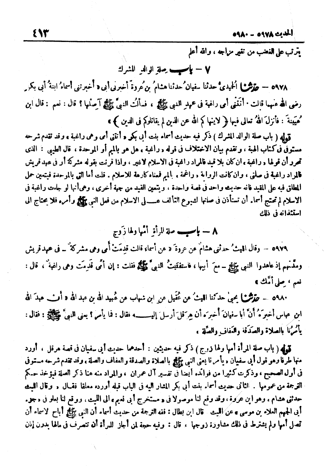 ذَكَرَ فِيهِ حَدِيثَ أَسْمَاءَ بِنْتِ أَبِي بَكْرٍ أَتَتْنِي أُمِّي وَهِيَ رَاغِبَةٌ وَقَدْ تَقَدَّمَ شَرْحُهُ مُسْتَوْفًى فِي كِتَابِ الْهِبَةِ وَتَقَدَّمَ بَيَانُ الِاخْتِلَافِ فِي