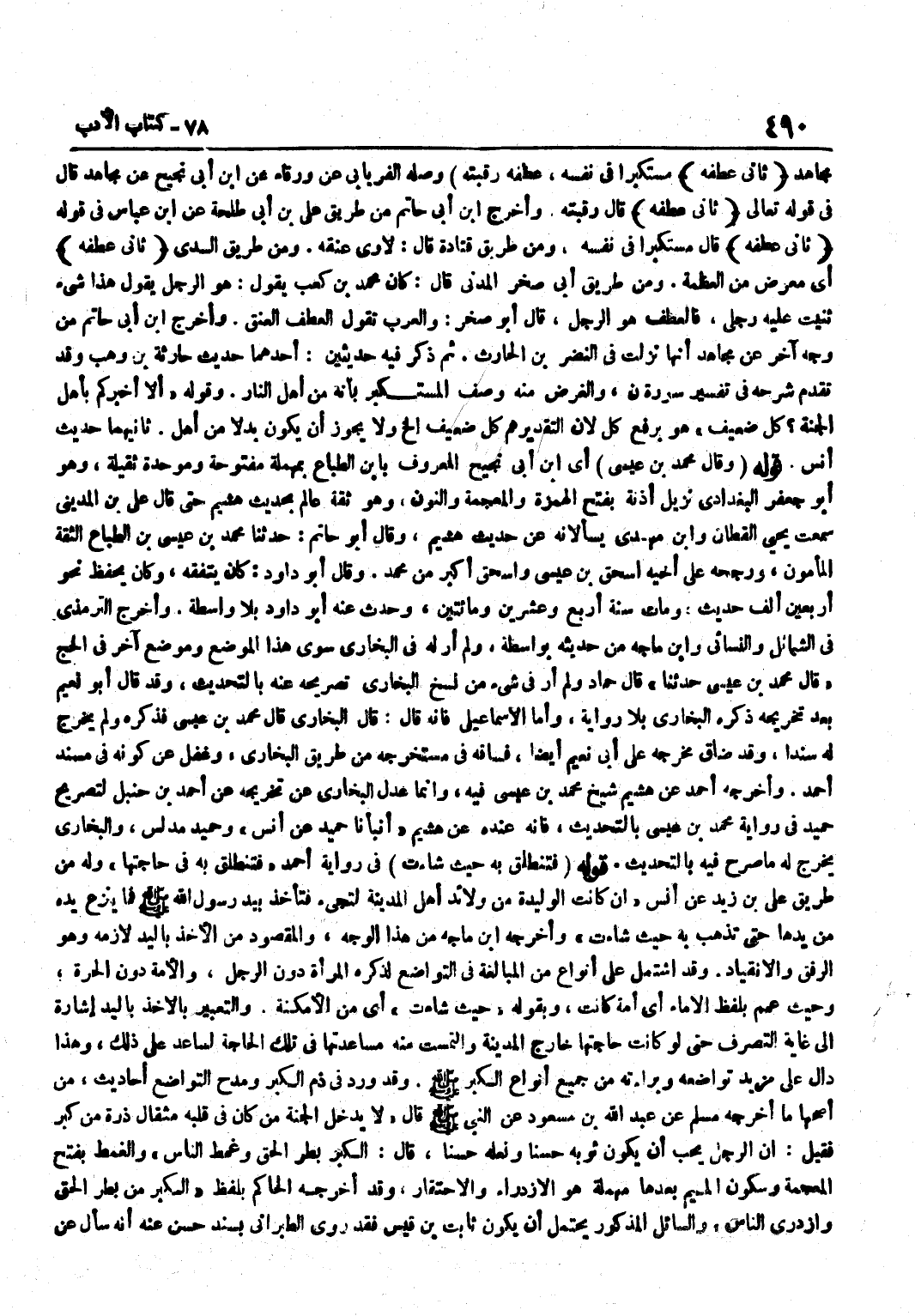 [6072] قَوْلُهُ وَقَالَ مُحَمَّدُ بْنُ عِيسَى أَي بن أَبِي نَجِيحٍ الْمَعْرُوفُ بِابْنِ الطَّبَّاعِ بِمُهْمَلَةٍ مَفْتُوحَةٍ وَمُوَحَّدَةٍ ثَقِيلَةٍ وَهُوَ أَبُو جَعْفَرٍ الْبَغْدَادِيُّ نَزِيلُ أَذَنَةَ بِفَتْحِ الْهَمْزَةِ وَالْمُعْجَمَةِ وَالنُّونِ وَهُوَ ثِقَةٌ عَالِمٌ بِحَدِيثِ هُشَيْمٍ حَتَّى قَالَ عَلِيُّ بْنُ الْمَدِينِيّ سَمِعت يحيى الْقطَّان وبن مَهْدِيٍّ يَسْأَلَانِهِ عَنْ حَدِيثِ هُشَيْمٍ وَقَالَ أَبُو حَاتِمٍ حَدَّثَنَا مُحَمَّدُ بْنُ عِيسَى بْنِ الطَّبَّاعِ الثِّقَةُ الْمَأْمُونُ وَرَجَّحَهُ عَلَى أَخِيهِ إِسْحَاقَ بْنِ عِيسَى وَإِسْحَاقُ أَكْبرُ مِنْ مُحَمَّدٍ وَقَالَ أَبُو دَاوُدَ كَانَ يَتَفَقَّهُ وَكَانَ يَحْفَظُ نَحْوَ أَرْبَعِينَ أَلْفَ حَدِيثٍ وَمَاتَ سَنَةَ أَرْبَعٍ وَعِشْرِينَ وَمِائَتَيْنِ وَحَدَّثَ عَنْهُ أَبُو دَاوُدَ بِلَا وَاسِطَةٍ وَأَخْرَجَ التِّرْمِذِيّ فِي الشَّمَائِل وَالنَّسَائِيّ وبن مَاجَهْ مِنْ حَدِيثِهِ بِوَاسِطَةٍ وَلَمْ أَرَ لَهُ فِي الْبُخَارِيِّ سِوَى هَذَا الْمَوْضِعِ وَمَوْضِعٌ آخَرَ فِي الْحَجِّ قَالَ مُحَمَّدُ بْنُ عِيسَى حَدَّثَنَا قَالَ حَمَّادٌ وَلَمْ أَرَ فِي شَيْءٍ مِنْ نُسَخِ الْبُخَارِيِّ تَصْرِيحَهُ عَنْهُ بِالتَّحْدِيثِ وَقَدْ قَالَ أَبُو نُعَيْمٍ بَعْدَ تَخْرِيجِهِ ذَكَرَهُ الْبُخَارِيُّ بِلَا رِوَايَةٍ وَأَمَّا الْإِسْمَاعِيلِيُّ فَإِنَّهُ قَالَ قَالَ الْبُخَارِيُّ قَالَ مُحَمَّدُ بْنُ عِيسَى فَذَكَرَهُ وَلَمْ يُخَرِّجْ لَهُ سَنَدًا وَقَدْ ضَاقَ مَخْرَجُهُ عَلَى أَبِي نُعَيْمٍ أَيْضًا فَسَاقَهُ فِي مُسْتَخْرَجِهِ مِنْ طَرِيقِ الْبُخَارِيِّ وَغَفَلَ عَنْ كَوْنِهِ فِي مُسْنَدِ أَحْمَدَ وَأَخْرَجَهُ أَحْمَدُ عَنْ هُشَيْمٍ شَيْخِ مُحَمَّدِ بْنِ عِيسَى فِيهِ وَإِنَّمَا عَدَلَ الْبُخَارِيُّ عَنْ تَخْرِيجِهِ عَنْ أَحْمَدَ بْنِ حَنْبَلٍ لِتَصْرِيحِ حُمَيْدٍ فِي رِوَايَةِ مُحَمَّدِ بْنِ عِيسَى بِالتَّحْدِيثِ فَإِنَّهُ عِنْدَهُ عَنْ هُشَيْمٍ أَنْبَأَنَا حُمَيْدٌ عَنْ أَنَسٍ وَحُمَيْدٌ مُدَلِّسٌ وَالْبُخَارِيُّ يُخَرِّجُ لَهُ مَا صَرَّحَ فِيهِ بِالتَّحْدِيثِ قَوْلُهُ فَتَنْطَلِقُ بِهِ حَيْثُ شَاءَتْ فِي رِوَايَةِ أَحْمَدَ فَتَنْطَلِقُ بِهِ فِي حَاجَتِهَا وَلَهُ مِنْ طَرِيقِ عَلِيِّ بْنِ زَيْدٍ عَنْ أَنَسٍ إِنْ كَانَتِ الْوَلِيدَةُ مِنْ وَلَائِدِ أَهْلِ الْمَدِينَةِ لَتَجِيءُ فَتَأْخُذُ بِيَدِ رَسُولِ اللَّهِ صَلَّى اللَّهُ عَلَيْهِ وَسَلَّمَ فَمَا يَنْزِعُ يَدَهُ مِنْ يَدِهَا حَتَّى تذْهب بِهِ حَيْثُ شَاءَت وَأخرجه بن مَاجَهْ مِنْ هَذَا الْوَجْهِ وَالْمَقْصُودُ مِنَ الْأَخْذِ بِالْيَدِ لَازِمُهُ وَهُوَ الرِّفْقُ وَالِانْقِيَادُ وَقَدِ اشْتَمَلَ عَلَى أَنْوَاعٍ مِنَ الْمُبَالَغَةِ فِي التَّوَاضُعِ لِذِكْرِهِ الْمَرْأَةَ دُونَ الرَّجُلِ وَالْأَمَةَ دُونَ الْحُرَّةِ وَحَيْثُ عَمَّمَ بِلَفْظِ الْإِمَاءِ أَيَّ أَمَةٍ كَانَتْ وَبِقَوْلِهِ حَيْثُ شَاءَتْ أَيْ مِنَ الْأَمْكِنَةِ وَالتَّعْبِيرُ بِالْأَخْذِ بِالْيَدِ إِشَارَةٌ إِلَى غَايَةِ التَّصَرُّفِ حَتَّى لَوْ كَانَتْ حَاجَتُهَا خَارِجَ الْمَدِينَةِ وَالْتَمَسَتْ مِنْهُ مُسَاعَدَتَهَا فِي تِلْكَ الْحَاجة لساعد عَلَى ذَلِكَ وَهَذَا دَالٌّ عَلَى مَزِيدِ تَوَاضُعِهِ وَبَرَاءَتِهِ مِنْ جَمِيعِ أَنْوَاعِ الْكِبْرِ صَلَّى اللَّهُ عَلَيْهِ وَسَلَّمَ وَقَدْ وَرَدَ فِي ذَمِّ الْكِبْرِ وَمَدْحِ التَّوَاضُعِ أَحَادِيثُ مِنْ أَصَحِّهَا مَا أَخْرَجَهُ مُسْلِمٌ عَنْ عَبْدِ اللَّهِ بْنِ مَسْعُودٍ عَنِ النَّبِيِّ صَلَّى اللَّهُ عَلَيْهِ وَسَلَّمَ قَالَ لَا يَدْخُلُ الْجَنَّةَ مَنْ كَانَ فِي قَلْبِهِ مِثْقَالُ ذَرَّةٍ مِنْ كِبْرٍ فَقِيلَ إِنَّ الرَّجُلَ يُحِبُّ