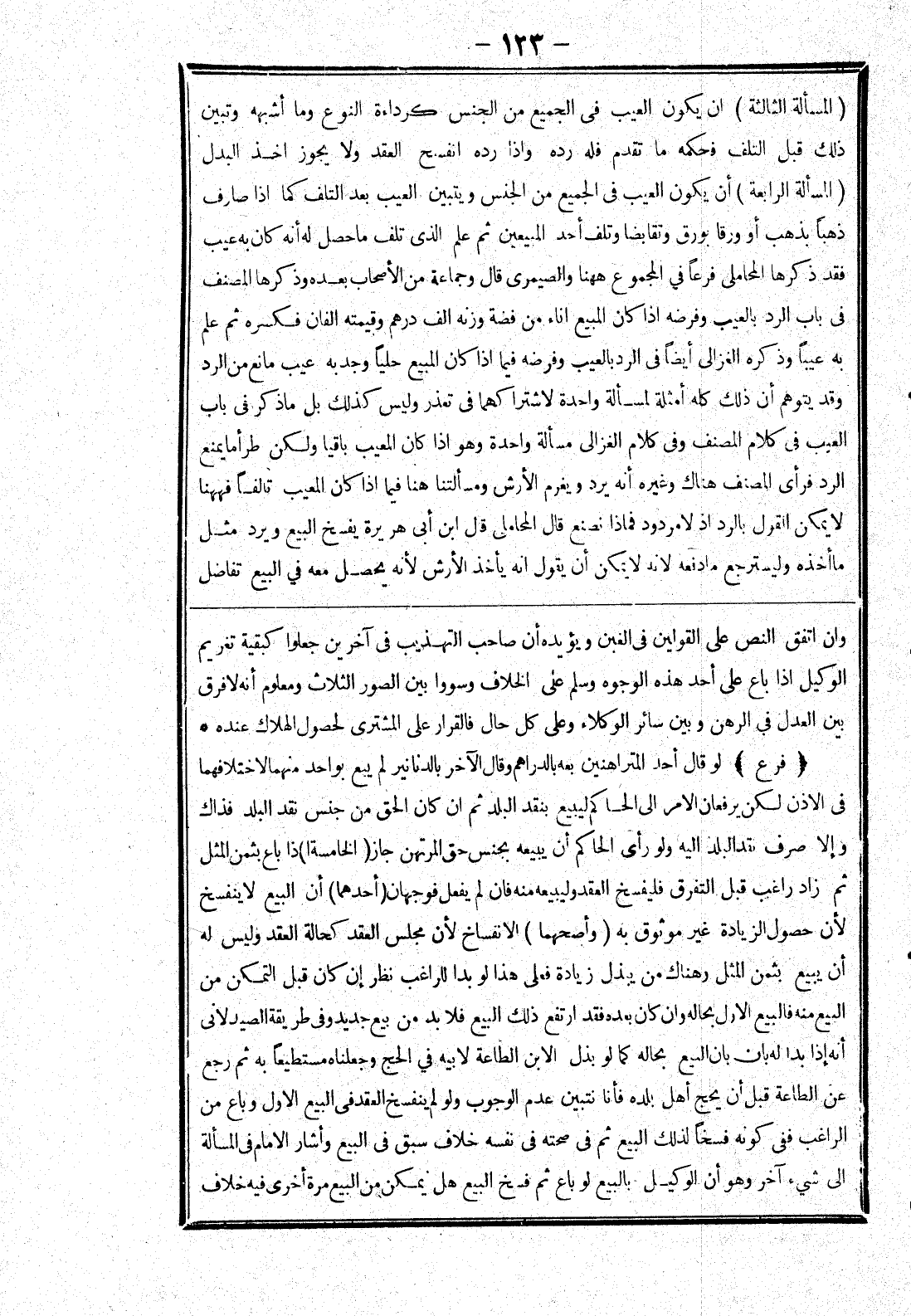 وان اتفق النص على القولين في الغبن ويؤيده أن صاحب التهذيب في آخرين جعلوا كبقية تغريم الوكيل إذا باع على أحد هذه الوجوه وسلم على الخلاف وسووا بين الصور الثلاث ومعلوم أنه لا فرق بين العدل في الرهن وبين سائر الوكلاء وعلى كل حال فالقرار على المشترى لحصول الهلاك عنده * (فرع) لو قال أحد المتراهنين بعه بالدراهم وقال الآخر بالدنانير لم يبع بواحد منهما لاختلافهما في الاذن لكن يرفعان الامر إلى الحاكم ليبيع بنقد البلد ثم ان كان الحق من جنس نقد البلد فذاك وإلا صرف نقد البلد إليه ولو رأى الحاكم أن يبيعه بجنس حق المرتهن جاز (الخامسة) إذا باع بثمن المثل ثم زاد راغب قبل التفرق فليفسخ العقد ولبيعه منه فان لم يفعل فوجهان (أحدهما) أن البيع لا ينفسخ لان حصول الزيادة غير موثوق به (وأصحهما) الانفساخ لان مجلس العقد كحالة العقد وليس له أن يبيع بثمن المثل وهناك من يبذل زيادة فعلى هذا لو بدا للراغب نظر إن كان قبل التمكن من البيع منه فالبيع الاول بحاله وان كان بعده فقد ارتفع ذلك البيع فلا بد من بيع جديد وفى طريقة الصيدلانى أنه إذا بدا له بان بان البيع بحاله كما لو بذل الابن الطاعة لابيه في الحج وجعلناه مستطيعا به ثم رجع من الطاعة قبل أن يحج أهل بلده فأنا نتبين عدم الوجوب ولو لم ينفسخ العقد في البيع الاول وباع من الراغب ففى كونه فسخا لذلك البيع ثم في صحته في نفسه خلاف سبق في البيع وأشار الامام في المسألة إلى شئ آخر وهو أن الوكيل بالبيع لو باع ثم فسخ البيع هل يمكن من البيع مرة أخرى فيه خلاف