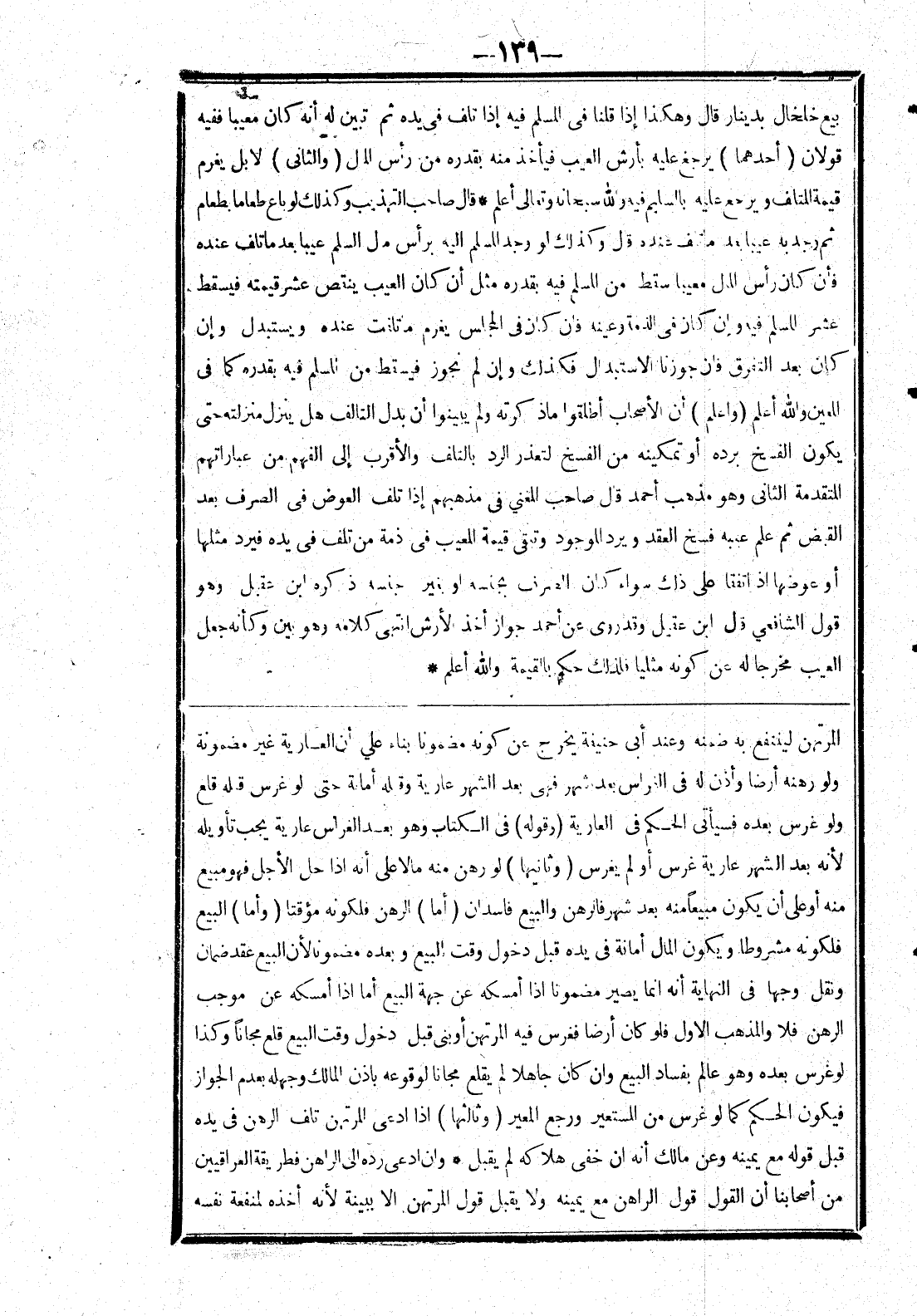 المرتهن لينتفع به ضمنه وعند أبى حنيفة يخرج عن كونه مضمونا بناء علي أن العارية غير مضمونة ولو رهنه أرضا وأذن له في الغراس بعد شهر فهى بعد الشهر عارية وقبله أمانة حتى لو غرس قبله قلع ولو غرس بعده فسيأتي الحكم في العارية (وقوله) في الكتاب وهو بعد الغراس عارية يجب تأويله لانه بعد الشهر عارية غرس أو لم يغرس (وثانيها) لو رهن منه مالا على أنه إذا حل الاجل فهو مبيع منه أو على أن يكون مبيعا منه بعد شهر فالرهن والبيع فاسدان (أما) الرهن فلكونه مؤقتا (وأما) البيع فلكونه مشروطا ويكون المال أمانة في يده قبل دخول وقت البيع وبعده مضمونا لان البيع عقد ضمان ونقل وجها في النهاية أنه انما يصير مضمونا إذا أمسكه عن جهة البيع أما إذا أمسكه عن موجب الرهن فلا والمذهب الاول فلو كان أرضا فغرس فيه المرتهن أو بنى قبل دخول وقت البيع قلع مجانا وكذا لو غرس بعده وهو عالم بفساد البيع وان كان جاهلا لم يقلع مجانا لوقوعه باذن المالك وجهله بعدم الجواز فيكون الحكم كما لو غرس من المستعير ورجع المعير (وثالثها) إذا ادعى المرتهن تلف الرهن في يده قبل قوله مع يمينه وعن مالك أنه ان خفى هلاكه لم يقبل * وان ادعى رده إلى الراهن فطريقة العراقيين من أصحابنا أن القول قول الراهن مع يمينه ولا يقبل قول المرتهن الا ببينة لانه أخذه لمنفعة نفسه