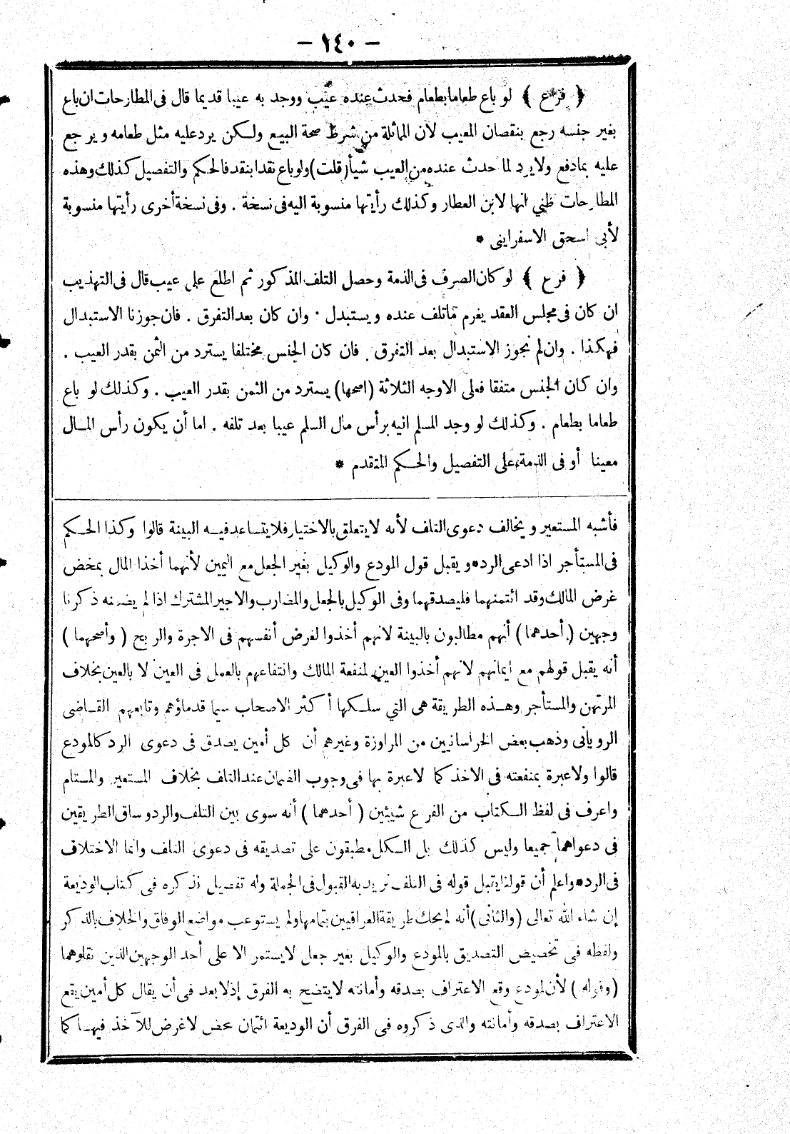 فأشبه المستعير ويخالف دعوى التلف لانه لا يتعلق بالاختيار فلا يتساعد فيه البينة قالوا وكذا الحكم في المستأجر إذا ادعى الرد * ويقبل قول المودع والوكيل بغير الجعل مع اليمين لانهما أخذا المال بمحض غرض المالك وقد أئتمنها فليصدقهما وفى الوكيل بالجعل والمضارب والاجير المشترك إذا لم يضمنه ذكرنا وجهين (أحدهما) أنهم مطالبون بالبينة لانهم أخذوا لغرض أنفسهم في الاجرة والربح (وأصحهما) أنه يقبل قولهم مع ايمانهم لانهم أخذوا العين لمنفعة المالك وانتفاعهم بالعمل في العين لا بالعين بخلاف المرتهن والمستأجر وهذه الطريقة هي التى سلكها أكثر الاصحاب سيما قدماؤهم وتابعهم القاضى الرويانى وذهب بعض الخراسانيين من المراوزة وغيرهم أن كل أمين يصدق في دعوى الرد كالمودع قالوا ولا عبرة بمنفعته في الاخذ كما لا عبرة بها في وجوب الضمان عند التلف بخلاف المستعير والمستام واعرف في لفظ الكتاب من الفرع شيئين (أحدهما) أنه سوى بين التلف والرد وساق الطريقين في دعواهما جميعا وليس كذلك بل الكل مطبقون على تصديقه في دعوى التلف وانما الاختلاف في الرد * واعلم أن قولنا يقبل قوله في التلف نريد به القبول في الجملة وله تفصيل نذكره في كتاب الوديعة إن شاء الله تعالى (والثانى) أنه لم يحك طريقة العراقيين بتمامها ولم يستوعب مواضع الوفاق والخلاف بالذكر ولفظه في تخصيص التصديق بالمودع والوكيل بغير جعل لا يستمر الا على أحد الوجهين الذين نقلوهما (وقوله) لان المودع وقع الاعتراف بصدقه وأمانته لا يتضح به الفرق إذ لابعد في أن يقال كل أمين يقع الاعتراف بصدقه وأمانته والذى ذكروه في الفرق أن الوديعة ائتمان محض لاغرض للآخذ فيها كما