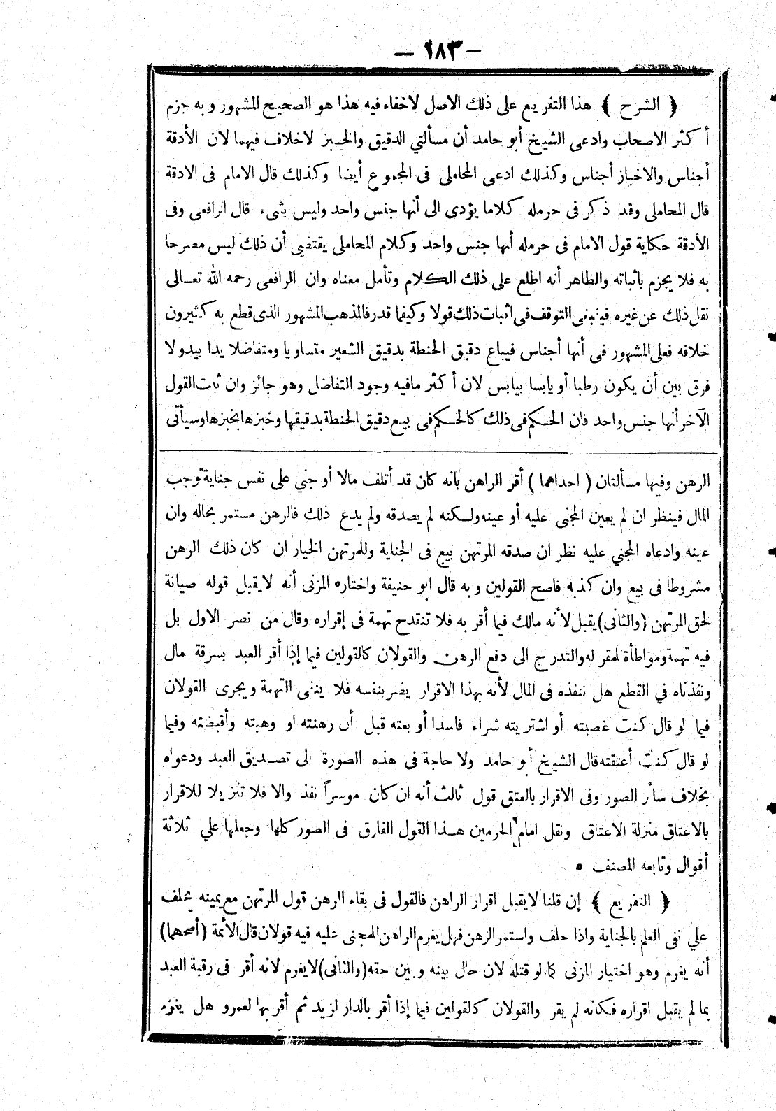الرهن وفيها مسألتان (احداهما) أقر الراهن بانه كان قد أتلف مالا أو جني على نفس جناية توجب المال فينظر ان لم يعين المجني على أو عينه ولكنه لم يصدقه ولم يدع ذلك فالرهن مستمر بحاله وان عينه وادعاه المجني عليه نظر ان صدقه المرتهن بيع في الجناية وللمرتهن الخيار ان كان ذلك الرهن مشروطا في بيع وان كذبه فاصح القولين وبه قال ابو حنيفة واختاره المزني أنه لا يقبل قوله صيانة لحق المرتهن (والثانى) يقبل لانه مالك فيما أقر به فلا تنقدح تهمة في إقراره وقال من نصر الاول فيه تهمة ومواطأة للمقر له والتدرج إلى دفع الرهن والقولان كالقولين فيما إذا أقر العبد بسرقة مال ونفذناه في القطع هل ننفذه في المال لانه بهذا الاقرار يضر بنفسه فلا ينفى التهمة ويجرى القولان فيما لو قال كنت غصبته أو اشتريته شراء فاسدا أو بعته قبل أن رهنته أو وهبته وأقبضته وفيما لو قال كنت أعتقته قال الشيخ أبو حامد ولا حاجة في هذه الصورة إلى تصديق العبد ودعواه