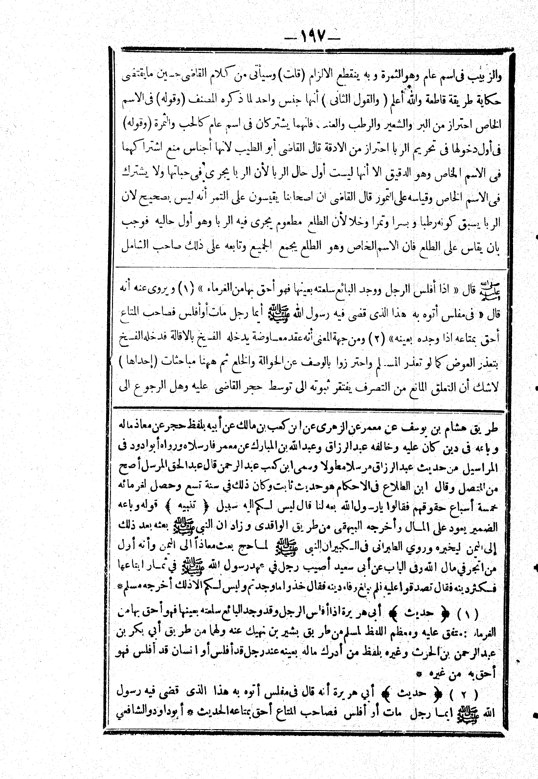 وباعه في دين كان عليه وخالفه عبد الرزاق وعبد الله بن المبارك عن معمر فارسلاه ورواه أبوادود في المراسيل من حديث عبد الرزاق مرسلا مطولا وسمى ابن كعب عبد الرحمن قال عبد الحق المرسل أصح من المتصل وقال ابن الطلاع في الاحكام هو حديث ثابت وكان ذلك في سنة تسع وحصل لغرمائه خمسة أسباع حقوقهم فقالوا يا رسول الله بعه لنا قال ليس لكم إليه سبيل (تنبيه) قوله وباعه الضمير يعود عليه المال وأخرجه البيهقى من طريق الواقدي وزاد ان النبي صلى الله عليه وسلم بعثه بعد ذلك إلى اليمن ليخبره وروى الطبراني في الكبيران النبي صلى الله عليه وسلم لما حج بعث معاذا إلى اليمن وأنه أول من اتجر في مال الله وفي الباب عن أبى سعيد أصيب رجل في عهد رسول الله صلى الله عليه وسلم في ثمار ابتاعها فكثر دينه فقال تصدقوا عليه فلم بلغ؟ وفاء دينه فقال خذو اما وجدتم وليس لكم الا ذلك أخرجه مسلم * (حديث) أبى هريرة إذا أفلس الرجل وقد وجد البائع سلعته بعينها فهو أحق بها من الغرماء: متفق عليه ومعظم اللفظ لمسلم من طريق بشير بن نهيك عنه ولهما من طريق أبى بكر بن عبد الرحمن بن الحرث وغيره بلفظ من أدرك ماله بعينه عند رجل قد أفلس أو انسان قد أفلس فهو أحق به من غيره * (حديث) أبى هريرة أنه قال في مفلس أتوه به هذا الذى قضى فيه رسول الله صلى الله عليه وسلم ايما رجل مات أو أفلس فصاحب المتاع أحق بمتاعه الحديث * أبو داود والشافعي