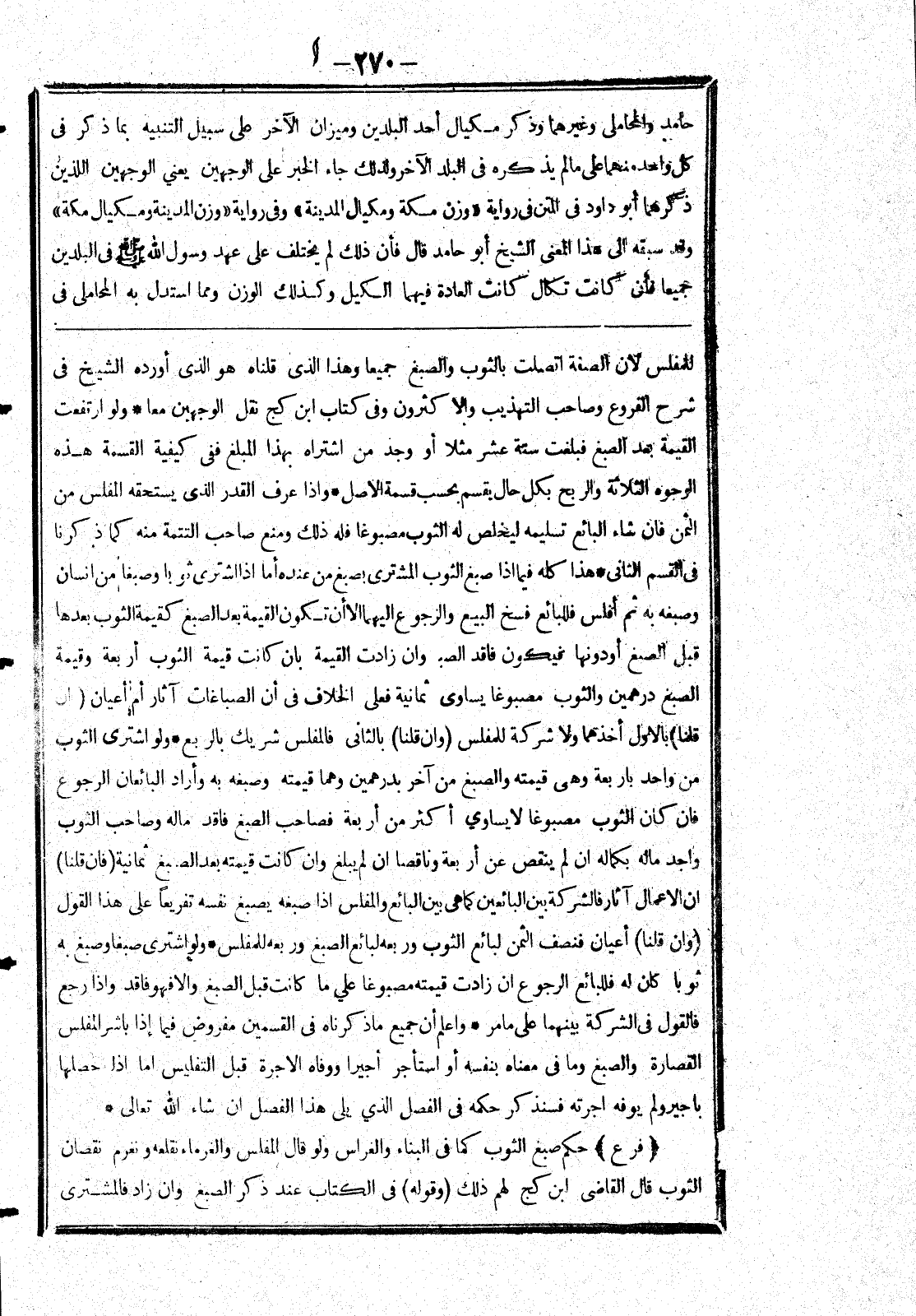 للمفلس لان الصفة اتصلت بالثوب والصبغ جميعا وهذا الذى قلناه هو الذى أورده الشيخ في شرح القروع وصاحب التهذيب والاكثرون وفى كتاب ابن كج نقل الوجهين معا * ولو ارتفعت القيمة بعد الصبغ فبلغت ستة عشر مثلا أو وجد من اشتراه بهذا المبلغ ففى كيفية القسمة هذه الوجوه الثلاثة والربح بكل حال يقسم بحسب قسمة الاصل * وإذا عرف القدر الذى يستحقه المفلس من الثمن فان شاء البائع تسلمه ليخلص له الثوب مصبوغا فله ذلك ومنع صاحب التتمة منه كما ذكرنا