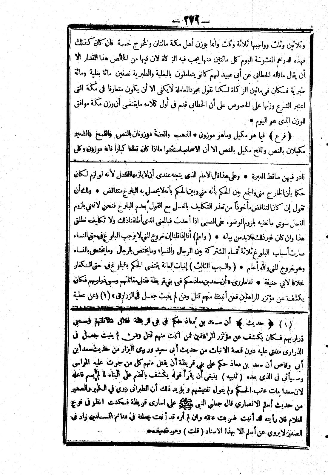 (حديث) أن سعد بن معاذ حكم في بنى قريطة فقتل مقاتلتهم وسبعى ذراريهم فكان يكشف عن مؤتزر المراهقين فمن اثبت منهم قتل ومن لم ينبت جعل في الذرارى متفق عليه دون قصة الانبات من حديث أبى سعيد وروى البزار من حديث سعد ابن أبى وقاص أن سعد بن معاذ حكم على بنى قريظة أن يقتل منهم كل من جرت عليه المواصى وسيأتى في الذى بعده (تنبيه) ينبغى أن يقرا قوله يكشف بالضم على البناء لما لم يسم فاعله لان سعدا مات عقب الحكم ولم يتول تفتيشهم ويؤيد ذلك أن الطبراني روى في الكبير والصغير من حديث أسلم الانصاري قال جعلني النبي صلى الله عليه وسلم على اسارى قريظة فكشف انظر في فرح الغلام فان رأيته قد أنبت ضربت عنقه وان لم أره قد أنبت جعلته في مغاثم المسلمين زاد في الصغير لا يروى عن أسلم الا بهذا الاسناد (قلت) وهو ضعيف