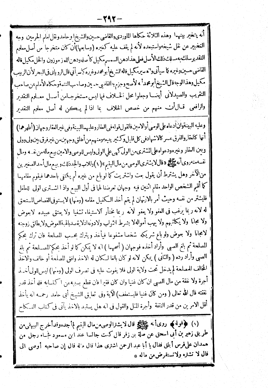 وعليه البينة وان ادعاه على الوصي أو الامين فالقول قوله في العقار وعليهما البينة وفى غير العقار وجهان (أظهرهما) أنها كالعقار والفرق عسر كالاشهاد في كل قليل وكثير يبيعه ومنهم من أطلق وجهين من غير فرق بين ولى وولى وبين العقار وغيره ودعواه على المشترى من الولى كهى على الولى وليس للوصي والامين بيع ماله من نفسه ومال نفسه منه روى أنه صلى الله عليه وسلم (قال لا يشترى الوصي من مال اليتيم) وللاب والجد ذلك وبيع مال أحد الصغيرين من الآخر وهل يشترط أن يقول بعت واشتريت كما لو باع من غيره أم يكتفى باحدهما فيقوم مقامهما كما أقيم الشخص الواحد مقام اثنين فيه وجهان تعرضنا لهما في أول البيع وإذا اشترى الولى للطفل فليشتر من ثقة وحيث أمر بالارتهان لم يقم أخذ الكفيل مقامه (ومنها) لا يستوفى القصاص المستحق له لانه ربما يرغب في العفو ولا يعفو لانه ربما بختأر الاستيفاء تشفيا ولا يعتق عبيده لا بعوض ولا مجانا ولا يكاتبهم ولا يهب أمواله لا بشرط الثواب ولا دونه إذ لا يقصد بالهبة العوض ولا يطلق زوجته لا مجانا ولا بعوض ولو باع شريكه شخصا مشفوعا فيأخذ ويترك بحسب المصلحة فان ترك بحكم المصلحة ثم بلغ الصبى وأراد أخذه فوجهان (أصحهما) انه لا يمكن كما لو أخذ بحكم المصلحة ثم بلغ الصبى وأراد رده (والثانى) يمكن لانه لو كان بالغا لكان له الاخذ وافق المصلحة أو خالف والاخذ المخالف للمصلحة لم يدخل تحت ولاية الولى فلا يفوت عليه في تصرف الولى (ومنها) ليس للولى أخذ أجرة ولانفقة من المال الصبى ان كان غنيا وان كان فقيرا فان قطع بسببه عن اكتسابه فله أخذ قدر نفقته قال الله تعالى (ومن كان غنيا فليستعفف) الاية وفى تعليق الشيخ أبى حامد رحمه انه يأخذ أقل الامرين من قدر النفقة وأجرة المثل والقول في انه هل يستبد بالاخذ يأتي في كتاب النكاح