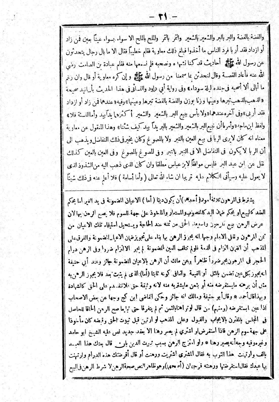 يشترط في المرهون ثلاثة أمور (أحدهما) أن يكون دينا (أما) الاعيان المضمونة في يد الغير اما بحكم العقد كالبيع أو بحكم ضمان اليد كالمغصوب والمستعار والماخوذ على جهة السوم فالاصح انه لا يجوز بها لان عرض الرهن بيع المرهون واستيفاء الحق من ثمنه عند الحاجة ويستحيل استيفاء تلك الاعيان من ثمن المرهون ونقل الامام وجها انه يجوز الرهن بها بناء على تجويز ضمان الاعيان المضمونة والفرق على قول المذهب أن الضمان التزام في الذمة فلو لم تتلف العين بالمضمونة لم يجز الالتزام ضررا وفى الرهن دوام الحجر في المرهون يجز ضررا ظاهرا وعن مالك أن الرهن بالاعيان المضمونة جائز وعند أبى حنيفة انه يجوز بكل عين تضمن بالمثل أو القيمة والثانية كونه ثابتا (أما) الذى لم يثبت بعد فلا يجوز الرهن به كما إذا رهنه بما يستقرضه منه أو بثمن ما يشتريه منه لانه وثيقة حق فلا تتقدم على الحق كالشهادة وبهذا قال أحمد * وقال أبو حنيفة ومالك انه جائز وحكاه القاضى ابن كج وجها عن بعض الاصحاب