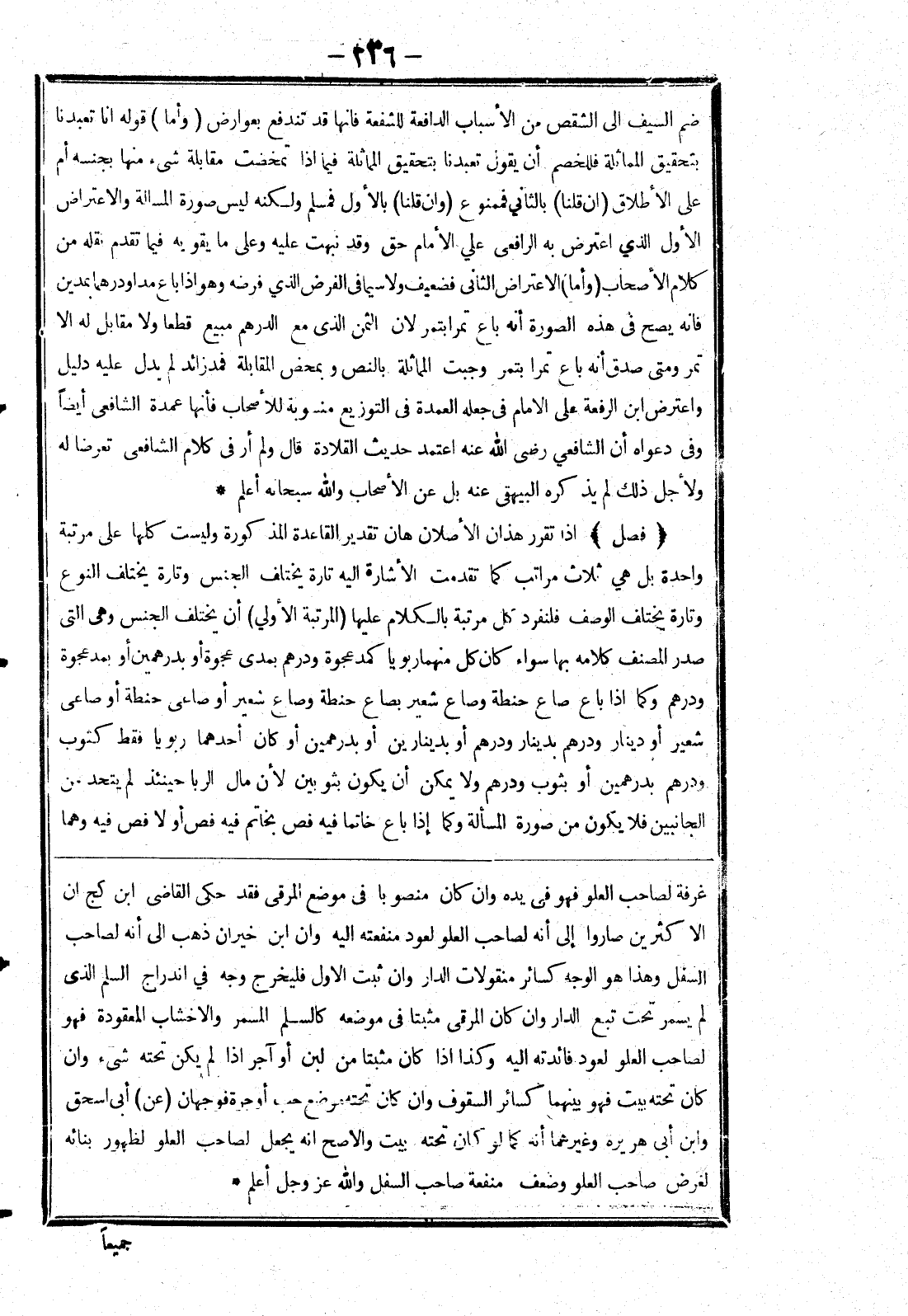 غرفة لصاحب فهو في يده وان كان منصوبا في موضع المرقى فقد حكى القاضى ابن كج ان الا كثرين صاروا إلى أنه لصاحب العلو لعود منفعته إليه وان ابن خيران ذهب إلى أنه لصاحب السفل وهذا هو الوجه كسائر منقولات الدار وان ثبت الاول فليخرج وجه في اندراج السلم الذى لم يسمر تحت تبع الدار وان كان المرقى مثبتا في موضعه كالسلم المسمر والاخشاب المعقودة فهو لصاحب العلو لعود فائدته إليه وكذا إذا كان مثبتا من لبن أو آجر إذا لم يكن تحته شئ وان كان تحته بيت فهو بينهما كسائر السقوف وان كان تحته موضع حب أو جرة فوجهان (عن) أبى اسحق وابن أبى هريرة وغيرهما أنه كما لو كان تحته بيت والاصح انه يجعل لصاحب العلو لظهور بنائه لغرض صاحب العلو وضعف منفعة صاحب السفل والله عزوجل أعلم *