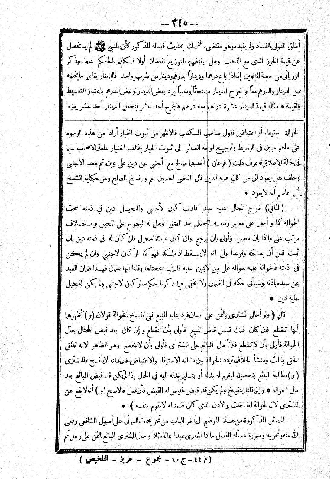 الحوالة استيفاء أو اعتياض فقول صاحب الكتاب فالاظهر من ثبوت الخيار أراد من هذه الوجوه على ما هو مبين في الوسيط وترجيح الوجه الصائر إلى ثبوت الخيار يخالف اختيار علمة الاصحاب سيما في حالة الاطلاق فاعرف ذلك (فرعان) أحدهما صالح مع أجنبي عن دين على عين ثم جحد الأجنبي وحلف هل يعود إلى من كان عليه الدين قال القاضى الحسين نعم ويفسخ الصلح وعن حكاية الشيخ أبى عاصم انه لا يعود * (الثاني) خرج المحال عليه عبدا فان كان لاجنبي وللمحيل دين في ذمته صحت الحوالة كما لو أحال على معسر وتبعه المحتال بعد العتق وهل له الرجوع على المحيل فيه خلاف مرتب على مااذا بان معسرا وأولى بان يرجع وان كان عبدا للمحيل فان كان له في ذمته دين بان ثبت قبل أن يمكله وفرعنا على انه لا يسقط إذا ملكه فهو كما لو كان لاجنبي وان لم يكن في ذمته فالحوالة عليه حوالة على من لا دين عليه فان صححتاها وقلنا انها ضمان فهذا ضمان العبد *