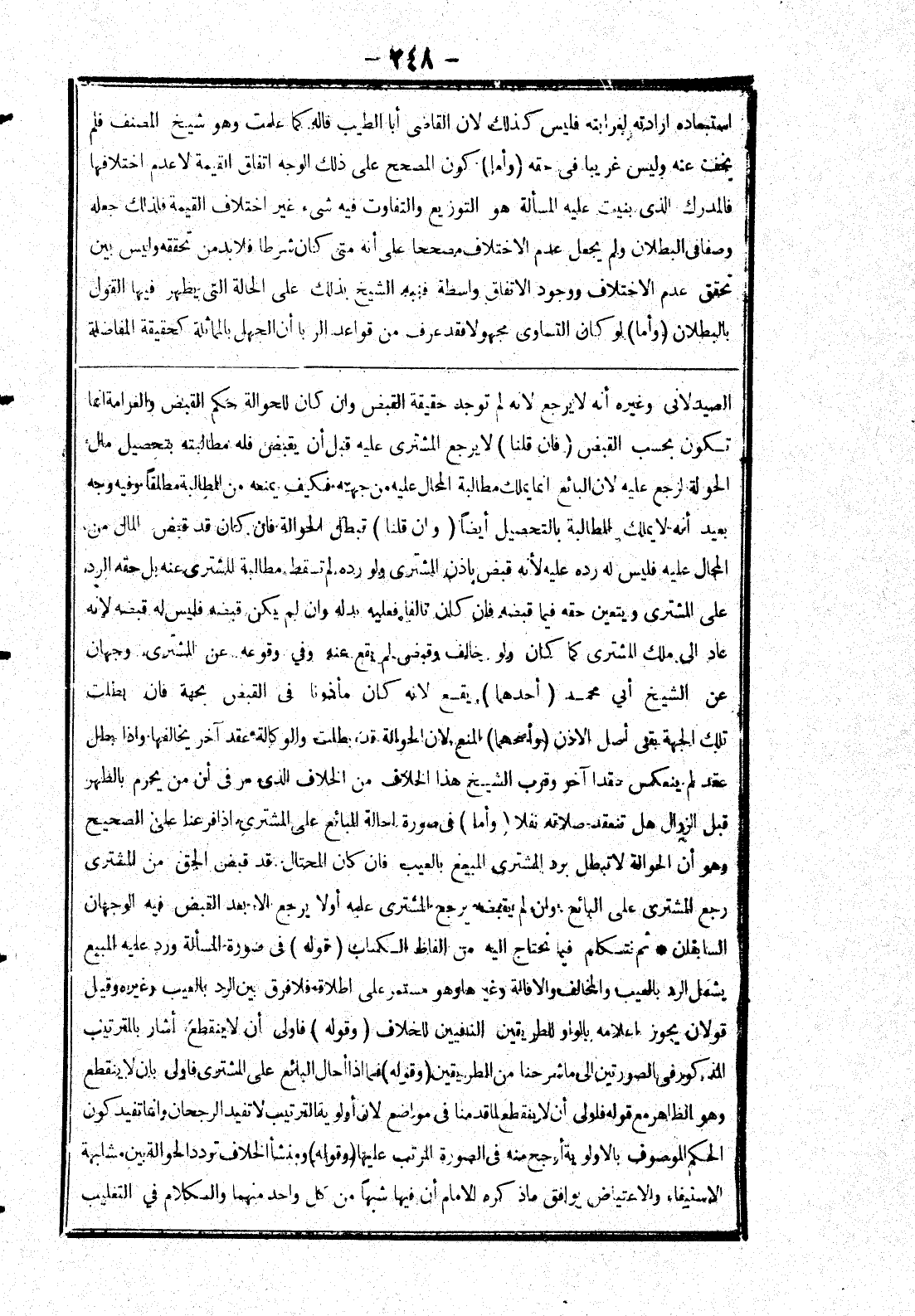رجع المشترى على البائع وان لم يقبضه يرجع المشترى علمه أولا يرجع الا بعد القبض فيه الوجهان السابقان * ثم نتكلم فيما تحتاج إليه من الفاظ الكتاب (قوله) في صورة المسألة ورد عليه المبيع يشتمل؟ الرد بالعيب والمخالف والاقالة وغيرها وهو مستمر على اطلاقه فلا فرق بين الرد بالعيب وغيره وقيل قولان يجوز اعلامه بالواو للطريقين النفيين للخلاف (وقوله) فاولى أن لا ينقطع أشار بالترتيب المذكور في الصورتين إلى ما شرحنا من الطريقين (وقوله) فيما إذا أحال البائع على المشترى فاولى بان لا ينقطع وهو الظاهر مع قوله فلولى أن لا ينقطع لما قدمنا في مواضع لان أولوية الترتيب لا تفيد الرجحان وانما تفيد كون الحكم الموصوف بالاولوية أرجح منه في الصورة المرتب عليها (وقوله) ومنشأ الخلاف تردد الحوالة بين مشابهة الاستيفاء والاعتياض يوافق ما ذكره الامام أن فيها شبها من كل واحد منهما والكلام في التغليب