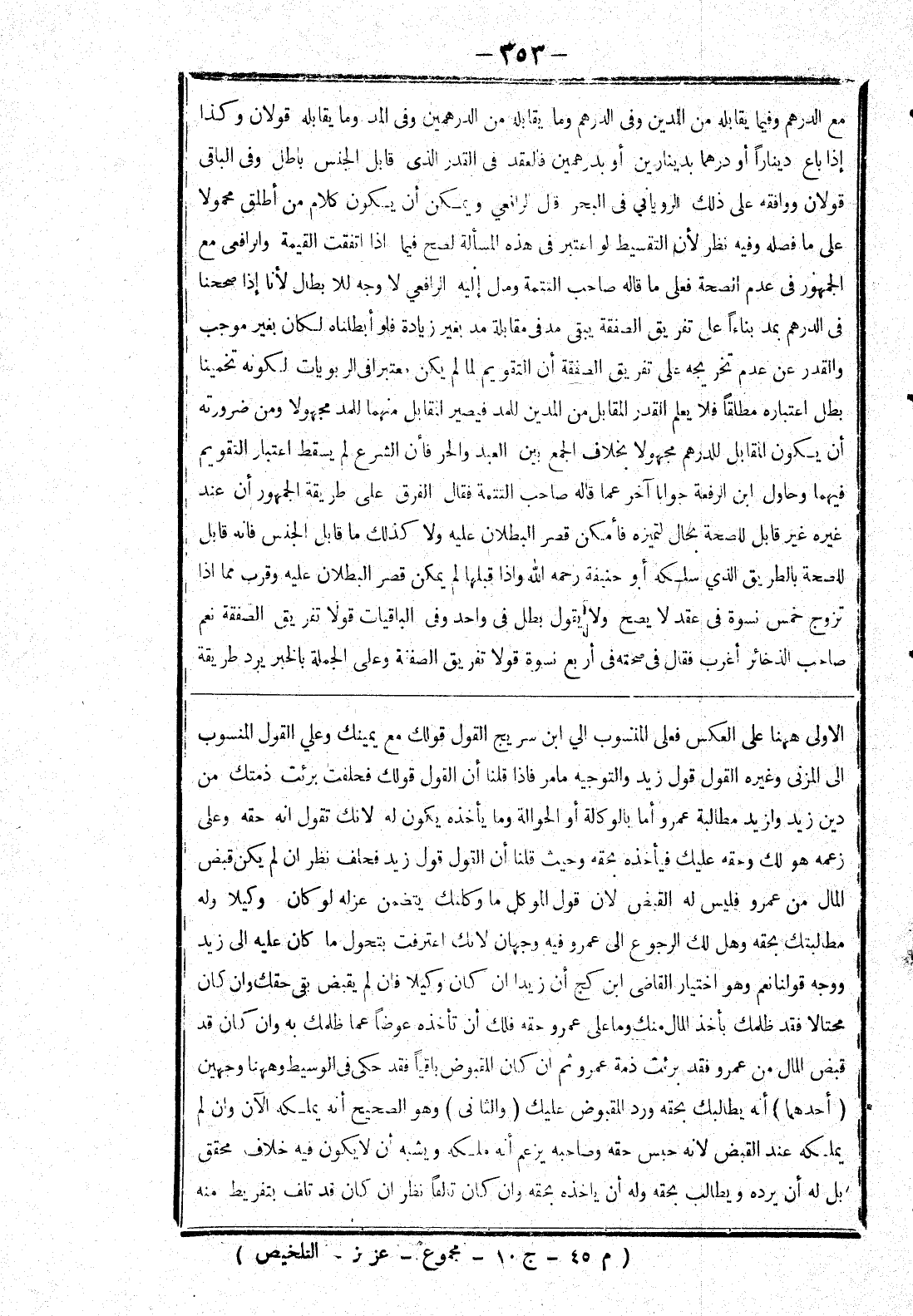 الاولى ههنا على العكس فعلى المنسوب إلى ابن سريج القول قولك مع يمينك وعلى القول المنسوب إلى المزني وغيره القول قول زيد والتوجيه ما مر فإذا قلنا أن القول قولك فحلفت برئت ذمتك من دين زيد ولزيد مطالبة عمرو أما بالوكالة أو الحوالة وما يأخذه يكون له لانك تقول انه حقه وعلى زعمه هو لك وحقه عليك فيأخذه بحقه وحيث قلنا أن القول قول زيد فحلف نظر ان لم يكن قبض المال من عمرو فليس له القبض لان قول الموكل ما وكلتك يتضمن عزله لو كان وكيلا وله مطالبتك بحقه وهل لك الرجوع إلى عمرو فيه وجهان لانك اعترفت بتحول ما كان عليه إلى زيد ووجه قولنا نعم وهو اختيار القاضى ابن كج أن زيدا ان كان وكيلا فان لم يقبض بقى حقك وان كان محتالا فقد ظلمك بأخذالمال منك وما على عمرو حقه فلك أن تأخذه عوضا عما ظملك به وان كان قد قبض المال من عمرو فقد برئت ذمة عمرو ثم ان كان المقبوض باقيا فقد حكى في الوسيط وههنا وجهين (أحدهما) أنه يطالبك بحقه ورد المقبوض عليك (والثانى) وهو الصحيح أنه يملكه الآن وان لم يملكه عند القبض لانه حبس حقه وصاحبه يزعم أنه ملكه ويشبه أن لا يكون فيه خلاف محقق بل له أن يرده ويطالب بحقه وله أن ياخذه بحقه وان كان تالفا نظر ان كان قد تلف بتفريط منه