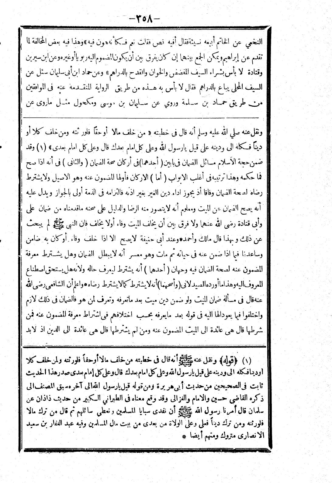 ونقل عنه صلى الله عليه وسلم أنه قال في خطبته (من خلف مالا أو حقا فلورثته ومن خلف كلا أو دينا فكله إلى ودينه علي قيل يارسول الله وعلى كل امام بعدك قال وعلى كل امام بعدى) وقد ضمن حجة الاسلام مسائل الضمان في بابين (أحدهما) في أركان صحة الضمان (والثانى) في أنه إذا صح فما حكمه وهذا ترتيبه في أغلب الابواب (أما) الاركان فأولها المضمون عنه وهو الاصيل ولا يشترط رضاه لصحة الضمان وفاقا أذ يجوز اداء دين الغير بغير اذنه فالتزامه في الذمة أولى بالجواز ويدل عليه أنه يصح الضمان عن الميت ومعلوم أنه لا يتصور منه الرضا والدليل على صحته ما قدمناه من ضمان على وأبى قتادة رضى الله عنهما ولا فرق بين أن يخلف الميت وفاء أولا يخلف فان النبي صلى الله عليه وسلم لم يبحث عن ذلك وبهذا قال مالك وأحمد * وعند أبى حنيفة لا يصح الا إذا خلف وفاء أو كان به ضامن وساعدنا فيما إذا ضمن عنه في حياته ثم مات وهو معسر أنه لا يبطل الضمان وهل يشترط معرفة المضمون عنه لصحة الضمان فيه وجهان (أحدهما) أنه لا يشترط كما لا يشترط ليعرف حاله ولانه هل يستحق اصطناع المعروف إليه وهذا اما أورده الصيدلانى (وأصحهما) أنه لا يشترط كما لا يشترط رضاه * واعلم أن الشافعي رضى الله عنه قال في مسألة ضمان الميت ولو ضمن دين ميت بعد ما تعرفه وتعرف لمن هو فالضمان في ذلك لازم واختلفوا فيما يعودالها إليه في قوله بعد ما يعرفه بحسب اختلافهم في اشتراط معرفة المضمون عنه فمن شرطها قال هي عائدة إلى الميت المضمون عنه ومن لم يشترطها قال هي عائدة إلى الدين إذ لابد