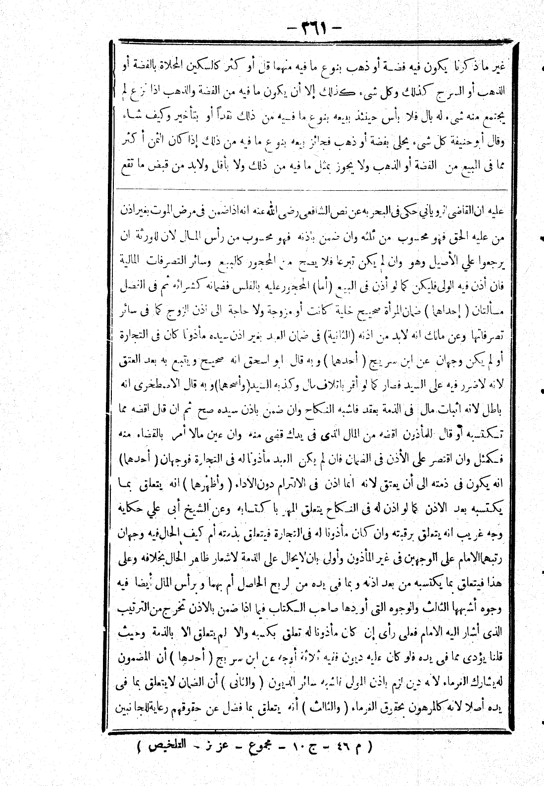 عليه ان القاضى الرواياني حكى في البحربه عن نص الشافعي رضى الله عنه انه إذا ضمن في مرض الموت بغير اذن من عليه الحق فهو محسوب من ثلثه وان ضمن باذنه فهو محسوب من رأس المال لان للورثة ان يرجعوا على الاصيل وهو وان لم يكن تبرعا فلا يصح من المحجور كالبيع وسائر التصرفات المالية فان أذن فيه الولى فليكن كما لو أذن في البيع (أما) المحجور عليه بالفلس فضمانه كشرائه ثم في الفصل مسألتان (إحدهما) ضمان المرأة صحيح خلية كانت أو مزوجة ولا حاجة إلى اذن الزوج كما في سائر تصرفتها وعن مالك انه لا بد من اذنه (الثانية) في ضمان العبد بغير اذن سيده مأذونا كان في التجارة أو لم يكن وجهان عن ابن سريج (أحدهما) وبه قال ابو اسحاق انه صحيح ويتبع به بعد العتق لانه لا ضرر فيه على السيد فصار كما لو أقر باتلاف مال وكذبه السيد (وأصحهما) وبه قال الاصطخرى انه باطل لانه اثبات مال في الذمة بعقد فاشبه النكاح وان ضمن باذن سيده صح ثم ان قال اقضه مما تكتسبه أو قال للمأذون اقضه من المال الذى في يدك قضى منه وان عين مالا أمر بالقضاء منه فكمثل وان اقتصر على الاذن في الضمان فان لم يكن العبد مأذونا له في التجارة فوجهان (أحدهما) انه يكون في ذمته إلى أن يعتق لانه انما اذن في الالترام دون الاداء (وأضهرهما) انه يتعلق بما يكتسبه بعد الاذن كما لو اذن له في النكاح يتعلق المهر باكتسابه وعن الشيخ أبى علي حكاية وجه غريب انه يتعلق برقبته وان كان مأذونا له في التجارة فيتعلق بذمته أم كيف الحال فيه وجهان رتبهما الامام على الوجهين في غير المأذون واولى بان لا يحال على الذمة لاشعار ظاهر الحال بخلافه وعلى