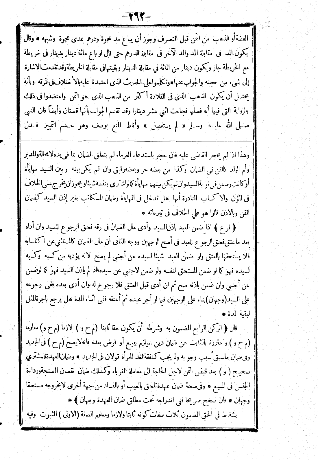 وهذا إذا لم يحجز القاضى عليه فان حجز باستدعاء الغرماء لم يتعلق الضامن بما في يده لا محالة والمدبر وأم الولد كالقن في الضمان وكذا من بعضه حر وبعضه رقيق وان لم يكن بينه وبين السيد مهايأة أو كانت وضمن في نوبة السيد وان لم يكن بينهما مهايأة كما لو اشترى بنفسه شيئا ويجوز ان يخرج على الخلاف في المؤن والاكساب النادرة أنها هل تدخل في المهايأة وضمان المكاتب بغير إذن السيد كضمان القن وبالاذن قالوا هو علي الحلاف في تبرعاته * (فرع) إذا ضمن العبد باذن السيد وأدى مال الضمان في رقه فحق الرجوع للسيد وان أداه بعد ما عتق فحق الرجوع لعبد في أصح الوجهين ووجه الثاني أن مال الضمان كالمستتني عن اكتسابه فلا يستحقها بالعتق ولو ضمن العبد شيئا لسيده عن أجنبي لم يصح لانه يؤديه من كسبه وكسبه لسيده فهو كما لو ضمن المستحق لنفسه ولو ضمن لاجنبي عن سيده فإذا لم ياذن السيد فهو كما لو ضمن عن أجنبي وان ضمن باذنه صح ثم ان أدى قبل العتق فلا رجوع له وان أدى بعده ففى رجوعه على السيد (وجهان) بناء على الوجهين فيما لو أجر عبده ثم أعتقه ففى أثناء المدة هل يرجع باجرة المثل لبقية المدة * قال (الركن الرابع المضمون به وشرطه أن يكون حقا ثابتا (م ح و) لازما (م ح و) معلوما (م ح و) واحترزنا بالثابت عن ضمان دين سيلزم ببيع أو قرض بعده فانه لا يصح (م ح) في الجديد وفى ضمان ما سبق سبب وجوبه ولم يجب كنفقة الغد للمرأة قولان في الجديد * وضمان العهدة للمشتري