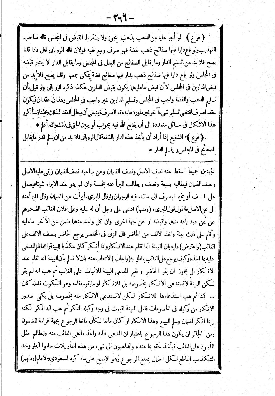 الجهتين جميعا سقط عنه نصف الاصل ونصف الضمان وعن صاحبه نصف الضمان وبقى عليه الاصل ونصف الضمان فيطالبه بسبعة ونصف ويطالب المبرأ عنه بخمسة وان لم ينو عند الابراء شيئا فيحمل على النصف أو يخير ليصرف إلى ما شاء فيه الوجهان ولو قال المبرئ أبرأت عن الضمان وقال المبرأ عنه بل عن الاصل فالقول قول المبرئ (ومنها) ادعى على رجل أن له عليه وعلى فلان الغائب الف درهم عن ثمن عبد باعه منهما واقبضه أو عن جهة اخرى وان كل واحد منهما ضمن عن الآخر ما عليه وأقام على ذلك بينة واخذ الالف من الحاضر قال المزني في المختصر يرجع الحاضر بنصف الالف على الغائب (واعترض) عليه بان البينة اما تقام عندا الانكار وإذا أنكر كان مكذبا للبينة زاعما ظلم المدعى