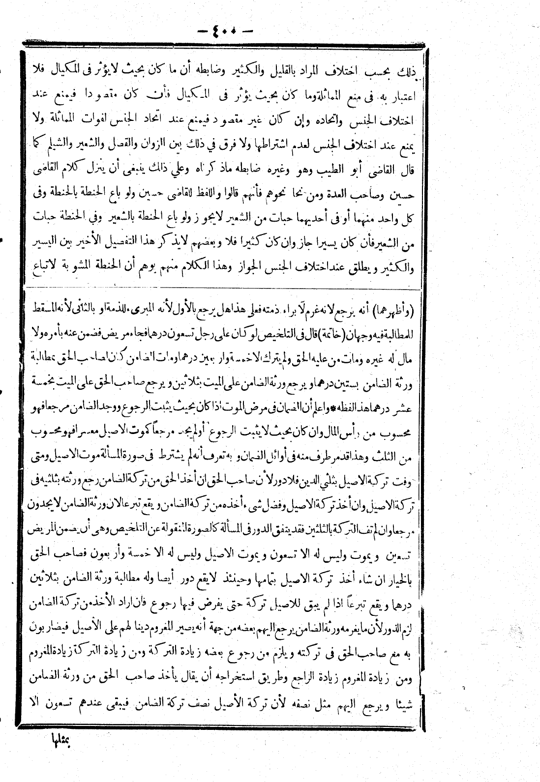 (وأظهرهما) أنه يرجع لانه غرم لآبراء ذمته فعلى هذا هل يرجع بالاول لانه المبرئ للذمة أو بالثاني لانه المسقط للمطالبة فيه وجهان (خاتمة) قال في التخليص لو كان على رجل تسعون درهما فجاء مريض فضمن عنه بأمره ولا مال له غيره ومات من عليه الحق ولم يترك الا خمسة واربعين درهما ومات الضامن كان لصاحب الحق بمطالبة ورثة الضامن بستين درهما ويرجع ورثة الضامن على الميت بثلاثين ويرجع صاحب الحق على الميت بخمسة عشر درهما هذا لفظه * واعلم أن الضمان في مرض الموت إذا كان بحيث يثبت الرجوع ووجد الضامن مرجعا فهو محسوب من رأس المال وان كان بحيث لا يثبت الرجوع أو لم يجد مرجعا كموت الاصيل معسرا فهو محسوب من الثلث وهذا قد مر طرف منه في أوائل الضمان وبه تعرف أنه لم يشترط في صورة المسألة موت الاصيل ومتى وفت تركة الاصيل بثلثي الدين فلا دور لان صاحب الحق ان أخذ الحق من تركة الضامن رجع ورثته بثلثيه في تركة الاصيل وان أخذ تركة الاصيل وفضل شئ أخذه من تركه الضامن ويقع تبرعا لان ورثة الضامن لا يجدون مرجعا وان لم تف التركة بالثلثين فقد يتفق الدور في المسألة كالصورة المنقولة عن التلخيص وهى أن يضمن المريض تسعين ويموت وليس له الا تسعون ويموت الاصيل وليس له الا خمسة وأربعون فصاحب الحق بالخيار ان شاء أخذ تركة الاصيل بتمامها وحينئذ لا يقع دور أيضا وله مطالبة ورثة الضامن بثلاثين درهما ويقع تبرعا إذا لم يبق للاصيل تركة حتى يفرض فيها رجوع فان اراد الاخذ من تركة الضامن لزم الدور لان ما يغرمه ورثة الضامن يرجع إليهم بعضه من جهة أنه يصير المغروم دينا لهم على الاصيل فيضاربون به مع صاحب الحق في تركته ويلزم من رجوع بعضه زيادة التركة ومن زيادة التركة زيادة المغروم ومن زيادة المغروم زيادة الراجع وطريق استخراجه أن يقال يأخذ صاحب الحق من ورثة الضامن