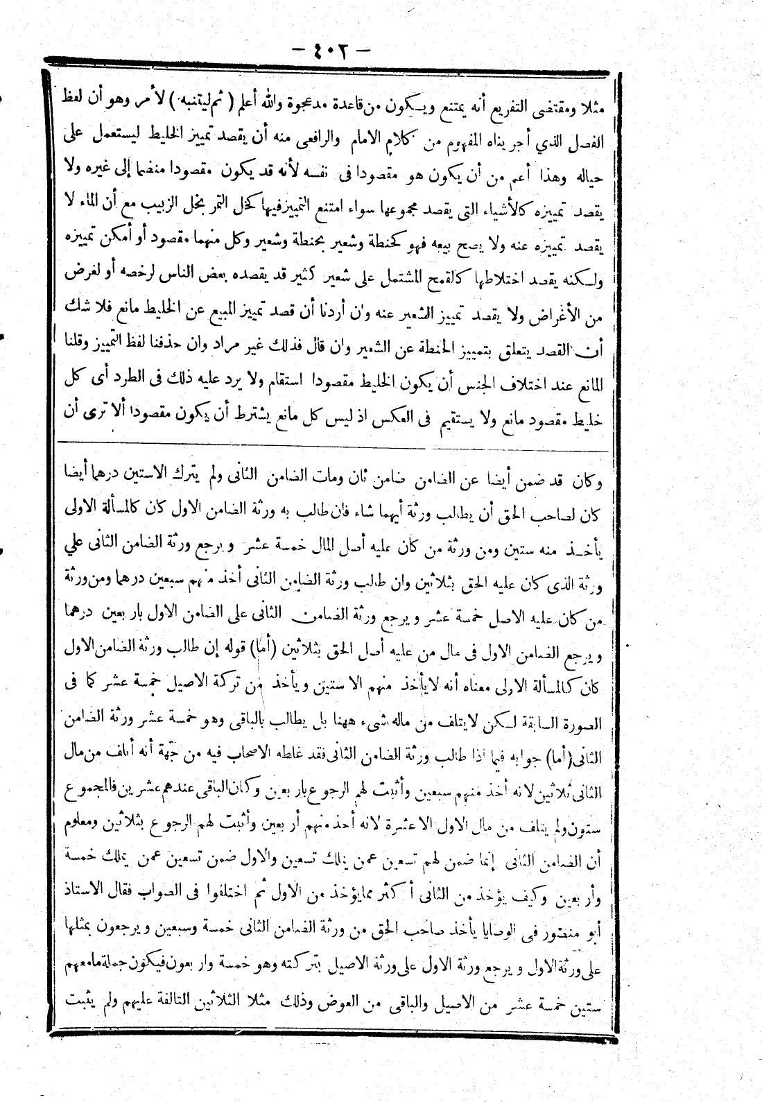 كان كالمسألة الاولى معناه أنه لا يأخذ منهم الا ستين ويأخذ من تركة الاصيل خمسة عشر كما في الصورة السابقة لكن لا يتلف من ماله شئ ههنا بل يطالب بالباقي وهو خمسة عشر ورثة الضامن الثاني (أما) جوابه فيما إذا طلب ورثة الضامن الثاني فقد غلطه الاصحاب فيه من جهة أنه أتلف من مال الثاني ثلاثين لانه أخذ منهم سبعين وأثبت لهم الرجوع باربعين وكان الباقي عندهم عشرين فالمجموع ستون ولم يتلف من مال الاول الا عشرة لانه أخذ منهم أربعين وأثبت لهم الرجوع بثلاثين ومعلوم أن الضامن الثاني إنما ضمن لهم تسعين عمن يملك تسعين والاول ضمن تسعين عمن يملك خمسة وأربعين وكيف يؤخذ من الثاني أكثر مما يؤخذ من الاول ثم اختلفوا في الصواب فقال الاستاذ أبو منصور في الوصايا يأخذ صاحب الحق من ورثة الضامن الثاني خمسة وسبعين ويرجعون بمثلها على ورثة الاول ويرجع ورثة الاول على ورثة الاصيل بتركته وهو خمسة واربعون فيكون جملة ما معهم ستين خمسة عشر من الاصيل والباقى من العوض وذلك مثلا الثلاثين التالفة عليهم ولم يثبت